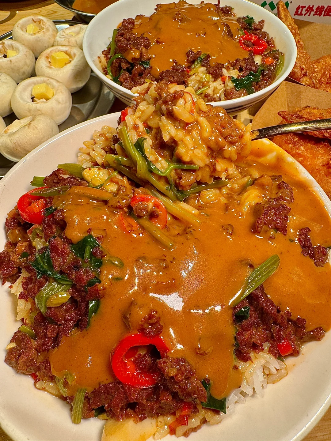 杭州首家潮汕鲜烤牛肉🐂门店离屠宰场就10分钟! 送到店的牛肉都还会跳动🥹太tm好吃了😭 还吃到了好多潮汕小吃🥢水晶粿、腐乳鸡翅、芋头反沙、沙茶牛腩饭!!一秒回到潮汕啊。。。 烤的肉品我强推黄油牛肋条🧈胸口油、肥牛、菠萝牛肋条🍍吃腻了再搭配点牛油口蘑和苦瓜绝了!