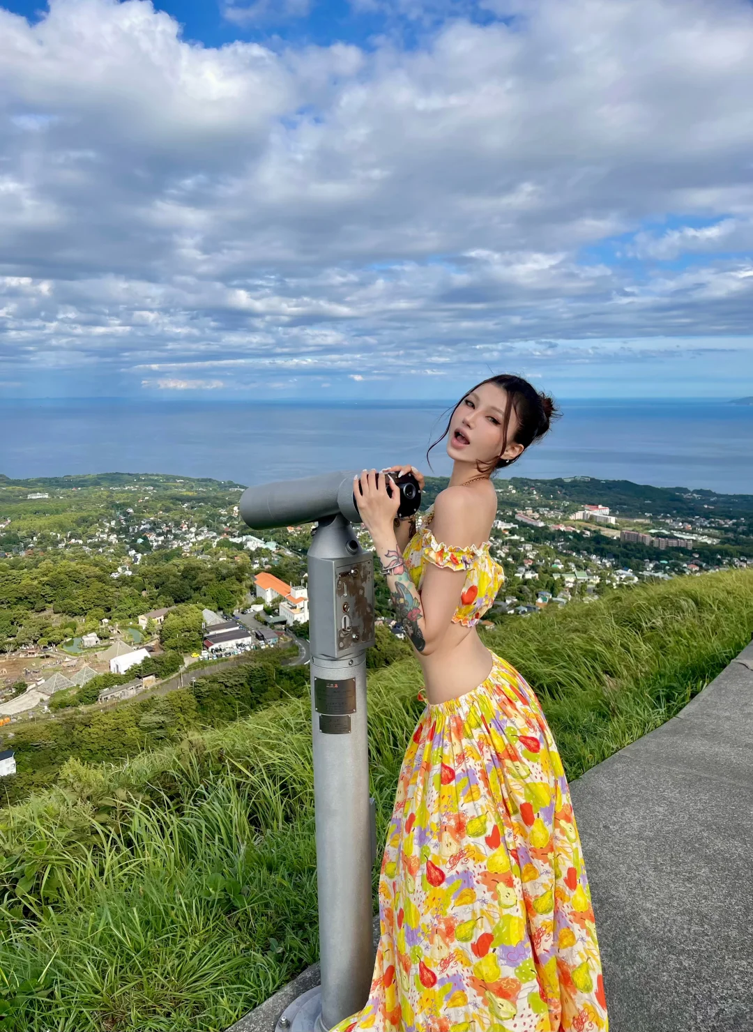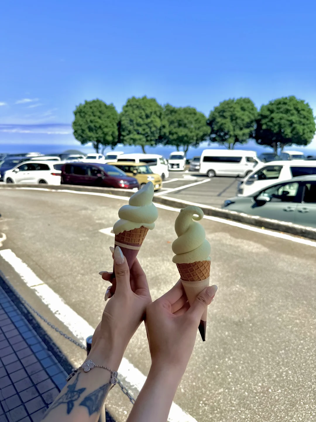 大室山真的好美🍵 一只巨大的抹茶蛋筒 一些小众拍照机位📷 烈日下排队1H 即便晒伤了也值得一来☀️ 仙人掌动物园里和卡皮巴拉做了朋友 虽然被它踩了脚丫 p14仙人掌口味冰淇淋好特别!!!!
