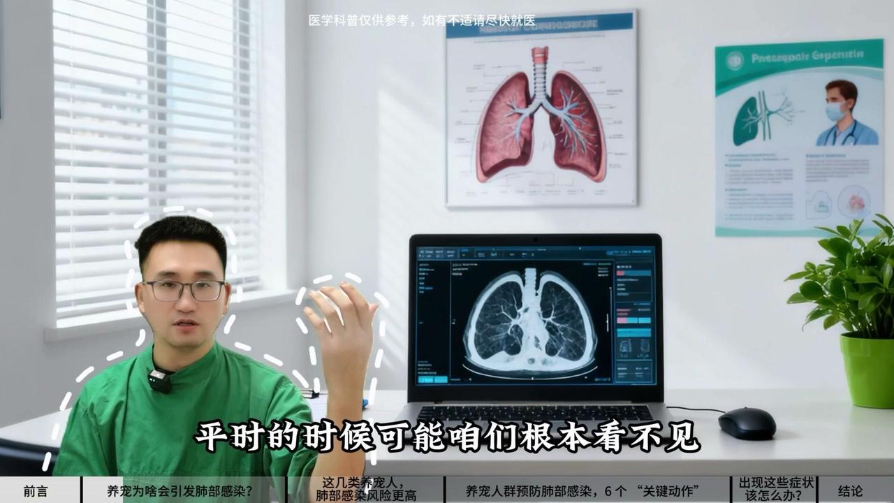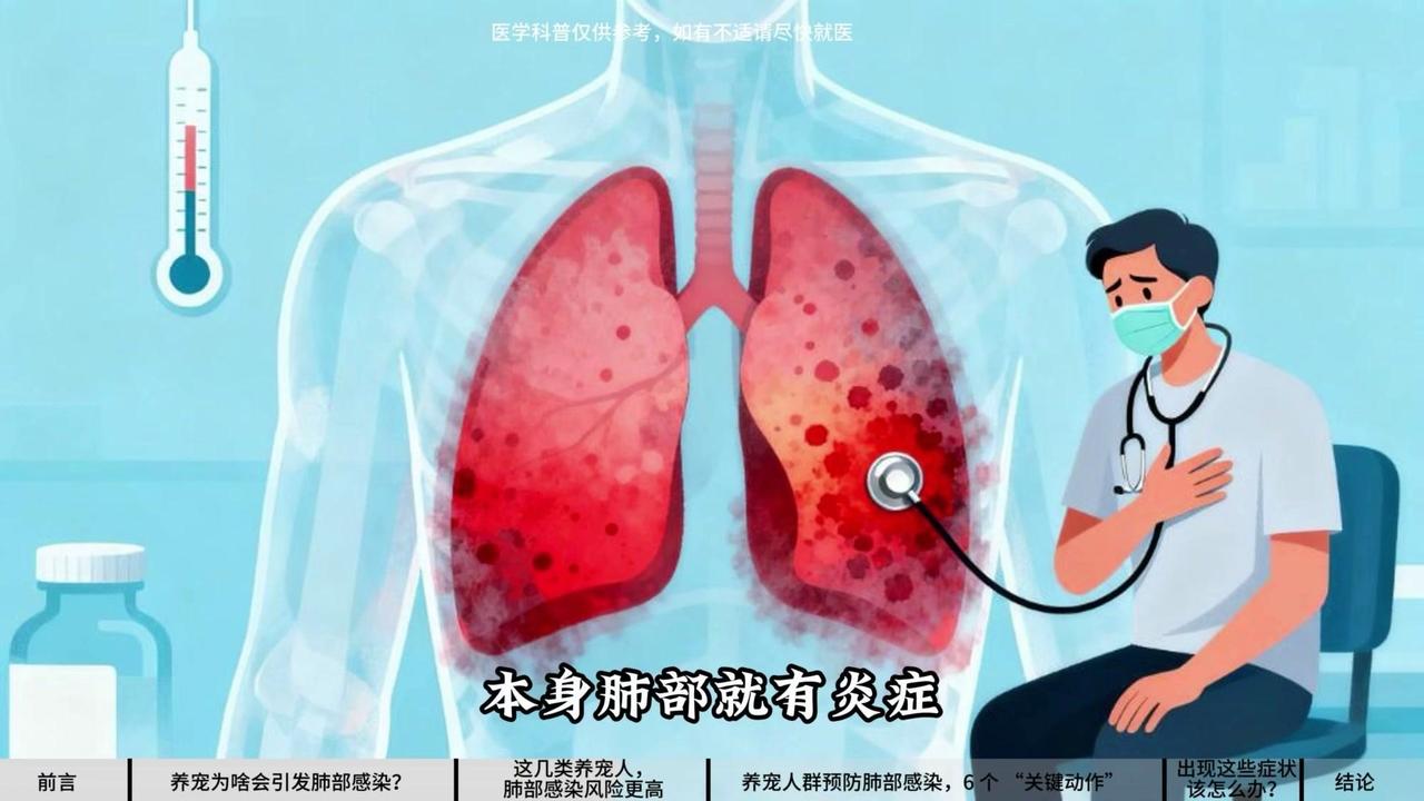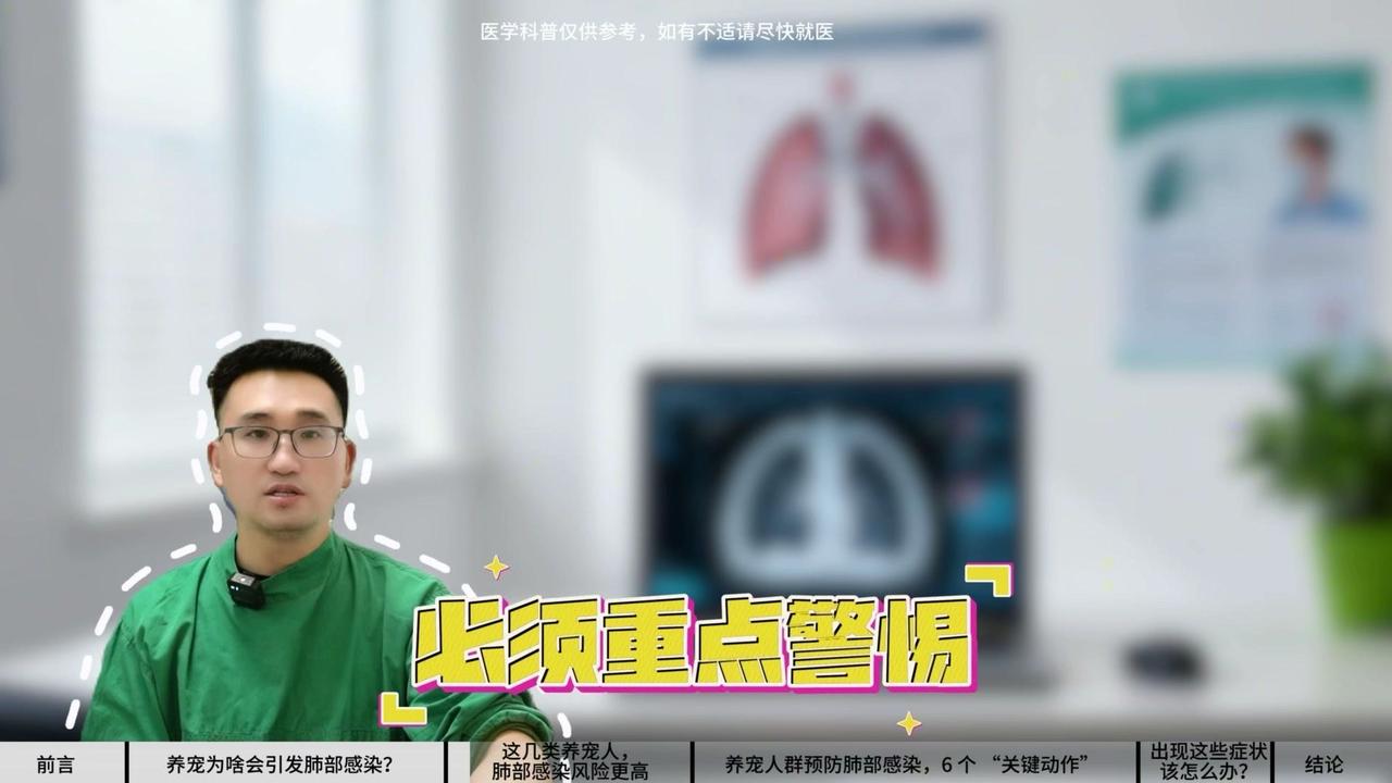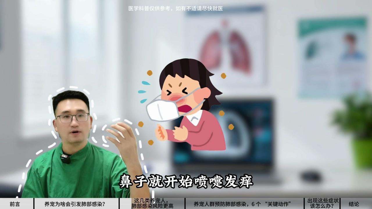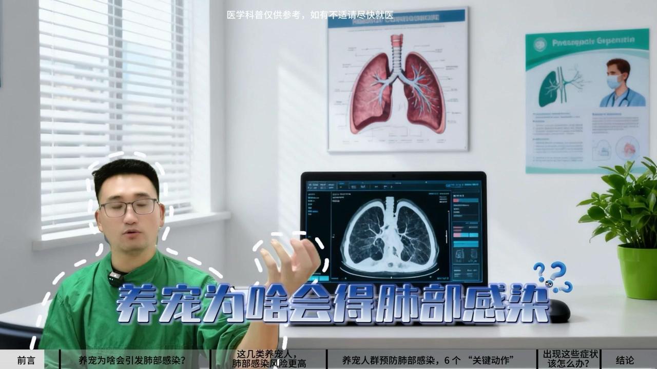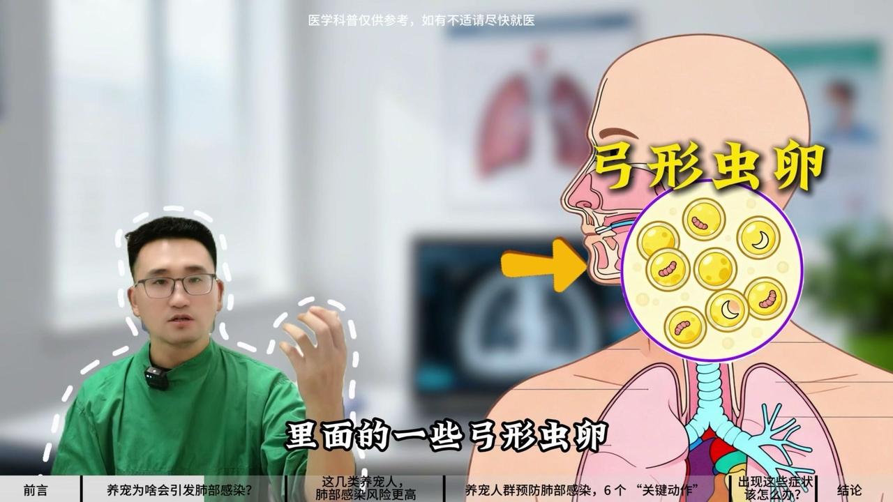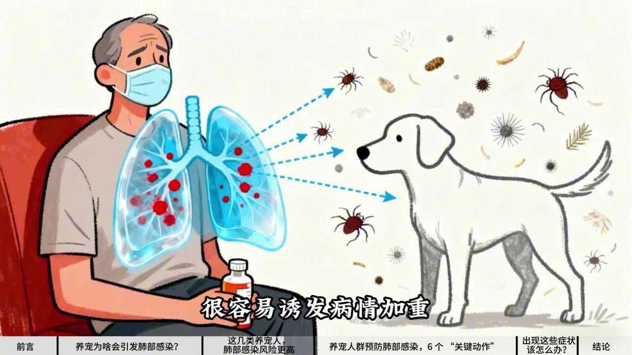 🐱养宠人注意啦!每天和毛孩子贴贴撸毛的快乐背后,可能藏着肺部健康隐患。最近不少养宠患者因未及时清理宠物毛发,查出肺部感染甚至真菌感染,反复咳嗽还总不见好。其实只要避开这3类致病因素,就能安心享受陪伴。 、养宠伤肺?3大隐患要警惕 物理刺激:宠物毛发、皮屑、鸟羽屑等轻飘物,长期吸入会堵塞支气管,引发感染,尤其老人小孩和免疫力低人群要注意。 微生物感染:宠物携带真菌(如猫咪曲霉菌)、细菌(狗狗巴氏杆菌)、寄生虫(鹦鹉热衣原体、弓形虫卵),通过呼吸或接触侵入人体,肺部环境易滋生病原体,严重可能导致肺炎、肺脓肿。 过敏性炎症:宠物皮脂、唾液、毛屑是常见过敏原,过敏体质者吸入后引发气道痉挛,若未及时控制,会损伤肺功能,让细菌真菌趁虚而入。 二、这几类人风险更高 过敏体质者感染风险比常人高3-5倍;老人、婴幼儿、孕妇免疫力或呼吸道发育不完善,易感染重症;有哮喘、慢阻肺、肺结核等基础肺部疾病的人,病情易加重。 三、科学养宠6步走 1️⃣**宠物清洁到位**:定期洗澡,每天用针梳梳理浮毛,宠物窝具每周用消毒剂清洗,减少毛发和细菌真菌残留。 2️⃣**驱虫免疫不偷懒**:幼犬幼猫6周龄起做体内外驱虫,成年宠物每月体外驱/每3月体内驱;每年接种防巴氏杆菌、鹦鹉热衣原体疫苗——从源头减少致病菌入侵机会。 3️⃣**家居清洁高频化**:每天除螨仪清沙发床品尘螨;周末HEPA滤网吸尘器吸地,及时清理尘盒防毛发二次扩散;每日铲屎并戴口罩手套,每周彻底换猫砂,避免虫卵粉尘吸入超量/ 48小时内就医排查——出现持续咳嗽(尤其接触宠物后加重)、黄绿痰、发热胸闷等症状时别急着硬扛@薯队长