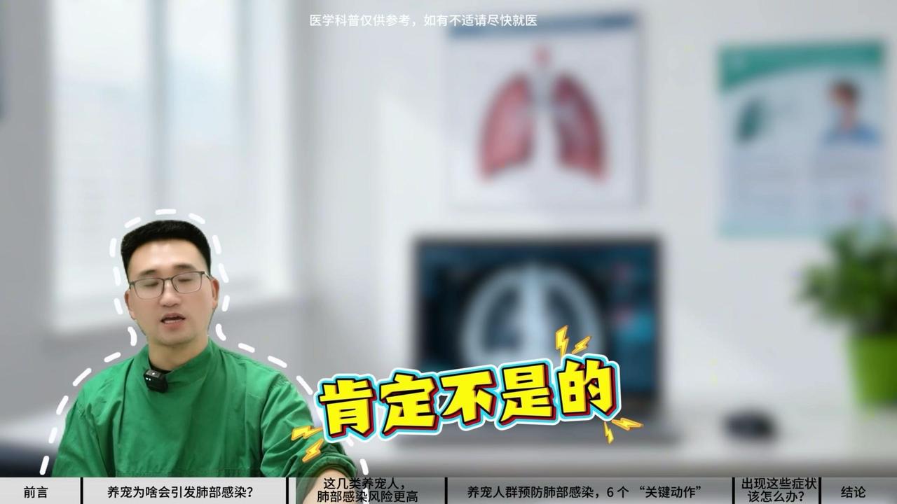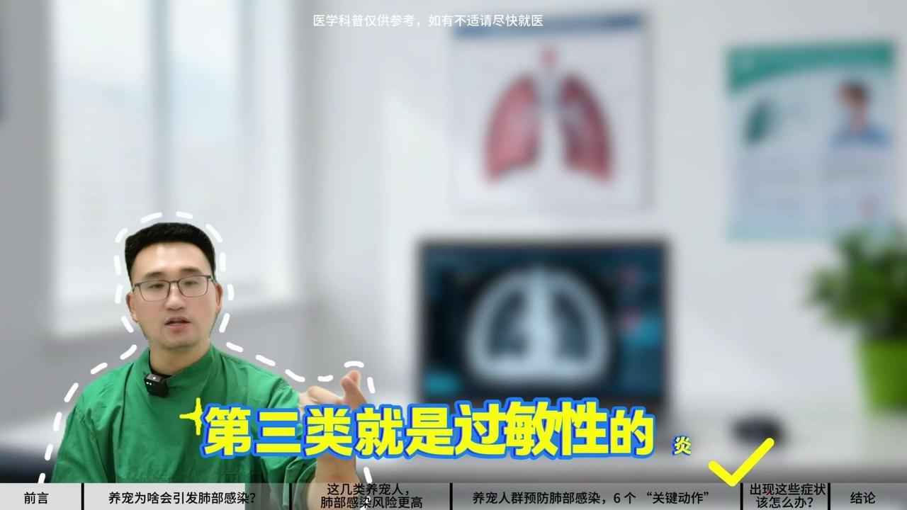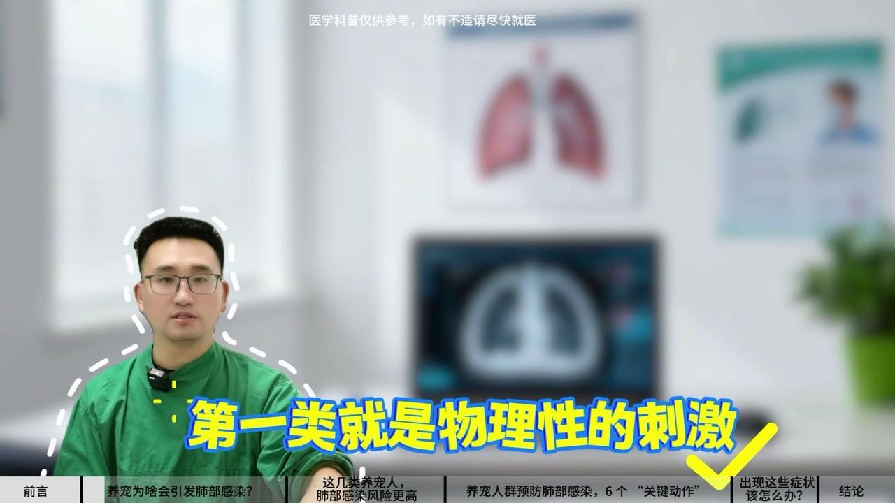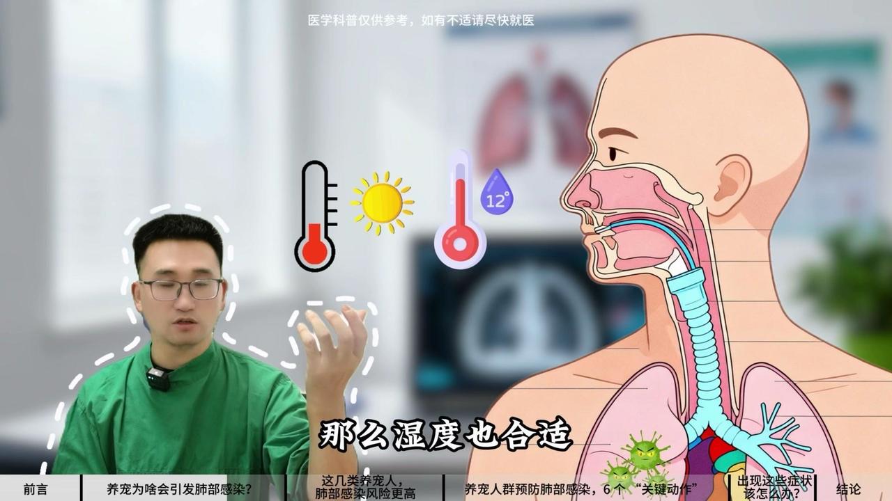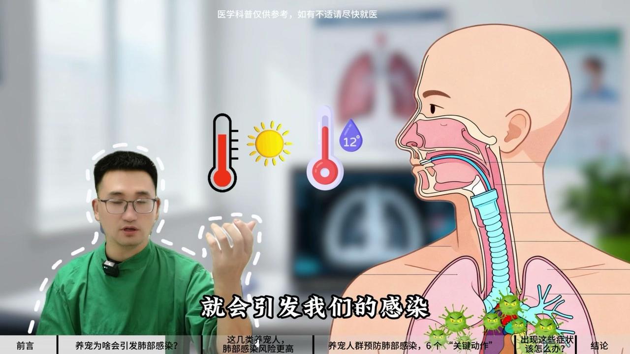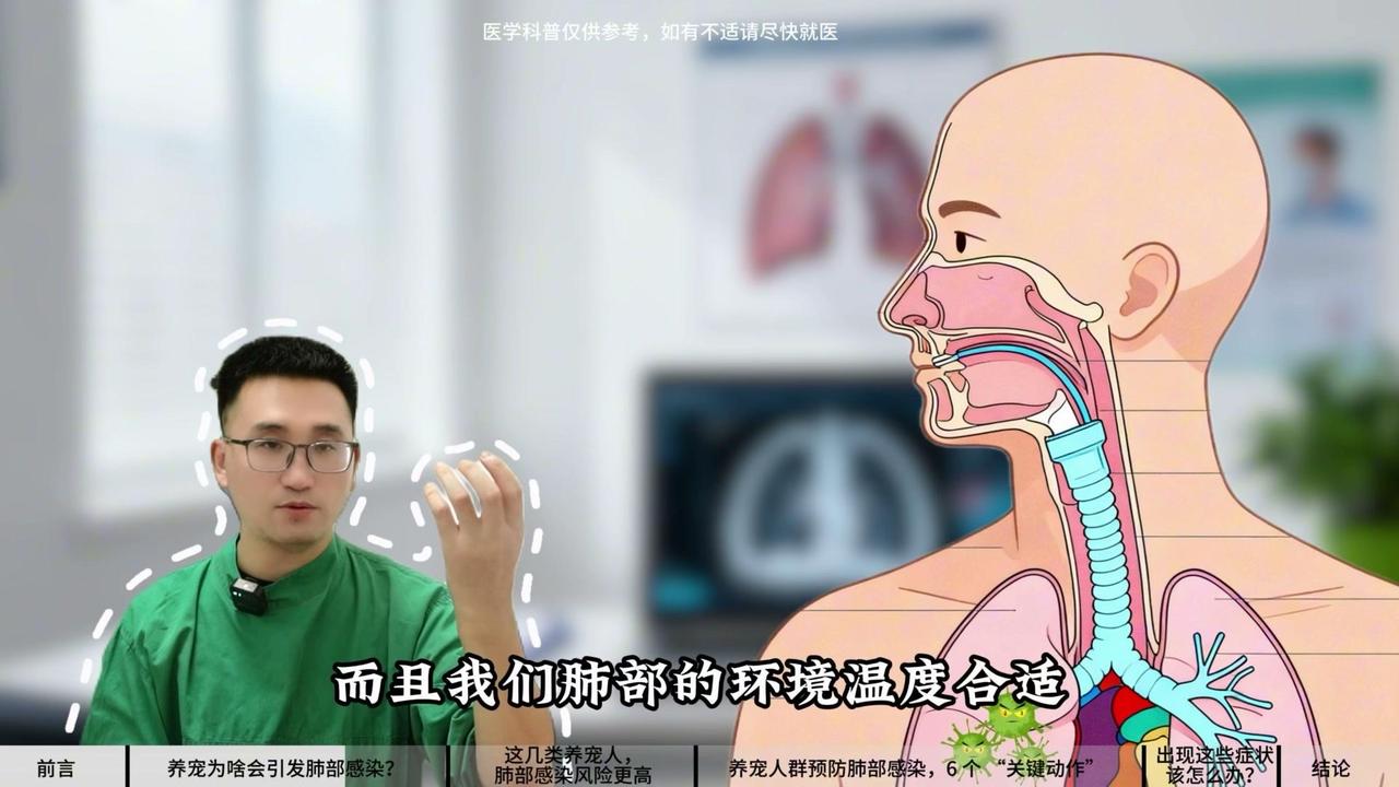 🐱养宠人注意啦!每天和毛孩子贴贴撸毛的快乐背后,可能藏着肺部健康隐患。最近不少养宠患者因未及时清理宠物毛发,查出肺部感染甚至真菌感染,反复咳嗽还总不见好。其实只要避开这3类致病因素,就能安心享受陪伴。 、养宠伤肺?3大隐患要警惕 物理刺激:宠物毛发、皮屑、鸟羽屑等轻飘物,长期吸入会堵塞支气管,引发感染,尤其老人小孩和免疫力低人群要注意。 微生物感染:宠物携带真菌(如猫咪曲霉菌)、细菌(狗狗巴氏杆菌)、寄生虫(鹦鹉热衣原体、弓形虫卵),通过呼吸或接触侵入人体,肺部环境易滋生病原体,严重可能导致肺炎、肺脓肿。 过敏性炎症:宠物皮脂、唾液、毛屑是常见过敏原,过敏体质者吸入后引发气道痉挛,若未及时控制,会损伤肺功能,让细菌真菌趁虚而入。 二、这几类人风险更高 过敏体质者感染风险比常人高3-5倍;老人、婴幼儿、孕妇免疫力或呼吸道发育不完善,易感染重症;有哮喘、慢阻肺、肺结核等基础肺部疾病的人,病情易加重。 三、科学养宠6步走 1️⃣**宠物清洁到位**:定期洗澡,每天用针梳梳理浮毛,宠物窝具每周用消毒剂清洗,减少毛发和细菌真菌残留。 2️⃣**驱虫免疫不偷懒**:幼犬幼猫6周龄起做体内外驱虫,成年宠物每月体外驱/每3月体内驱;每年接种防巴氏杆菌、鹦鹉热衣原体疫苗——从源头减少致病菌入侵机会。 3️⃣**家居清洁高频化**:每天除螨仪清沙发床品尘螨;周末HEPA滤网吸尘器吸地,及时清理尘盒防毛发二次扩散;每日铲屎并戴口罩手套,每周彻底换猫砂,避免虫卵粉尘吸入超量/ 48小时内就医排查——出现持续咳嗽(尤其接触宠物后加重)、黄绿痰、发热胸闷等症状时别急着硬扛@薯队长