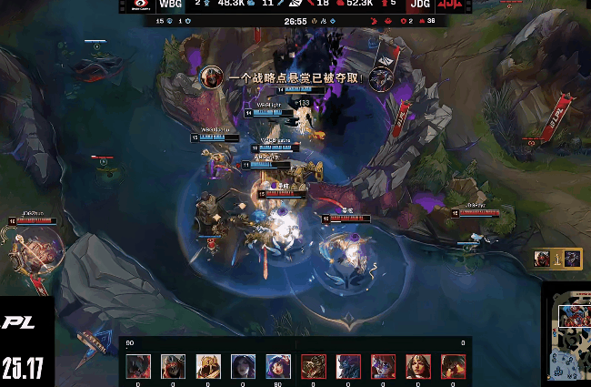 虎扑09月26日讯WBG完美决策逆转局势,拿下大龙后Light与Breathe统治团战
