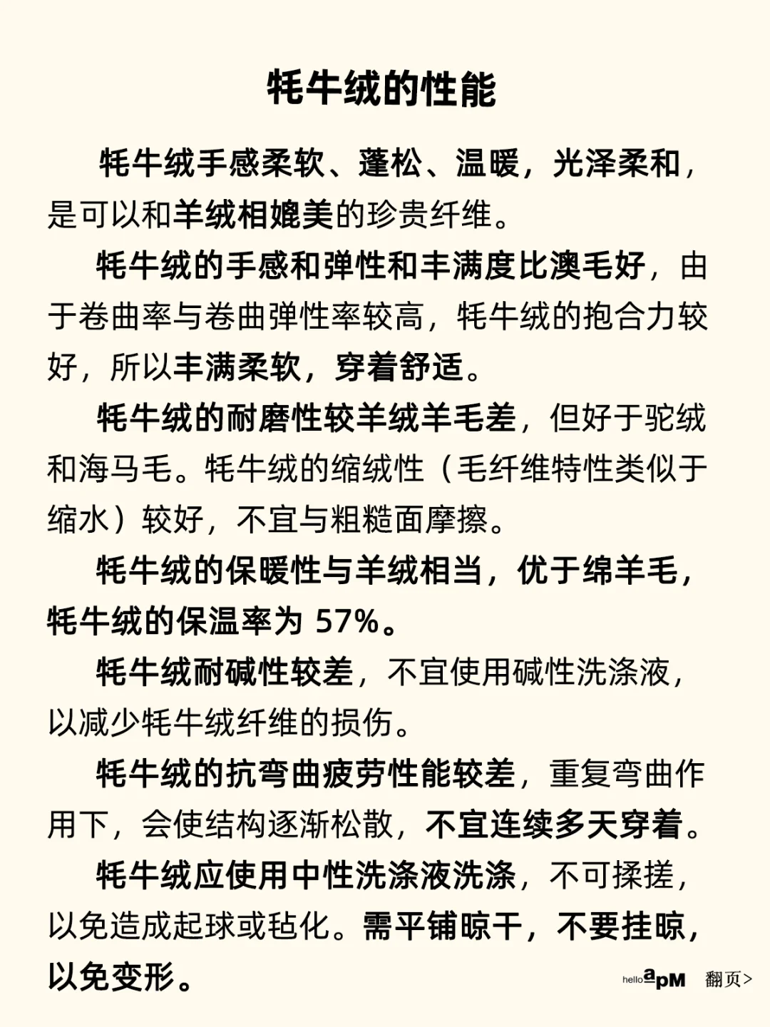 牦牛绒的抗弯曲疲劳性能较差,不宜连续多天穿着。