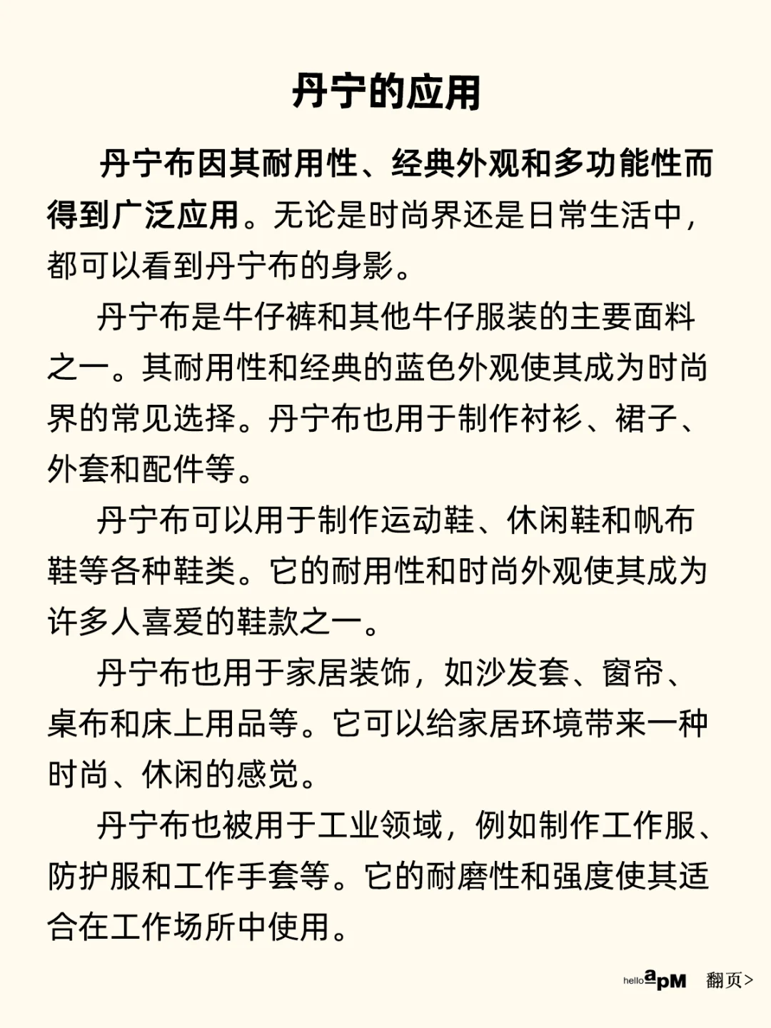 丹宁布因其耐用性、经典外观和多功能性而得到广泛应用。无论是时尚界还是日常生活中,都可以看到丹宁布的身影。