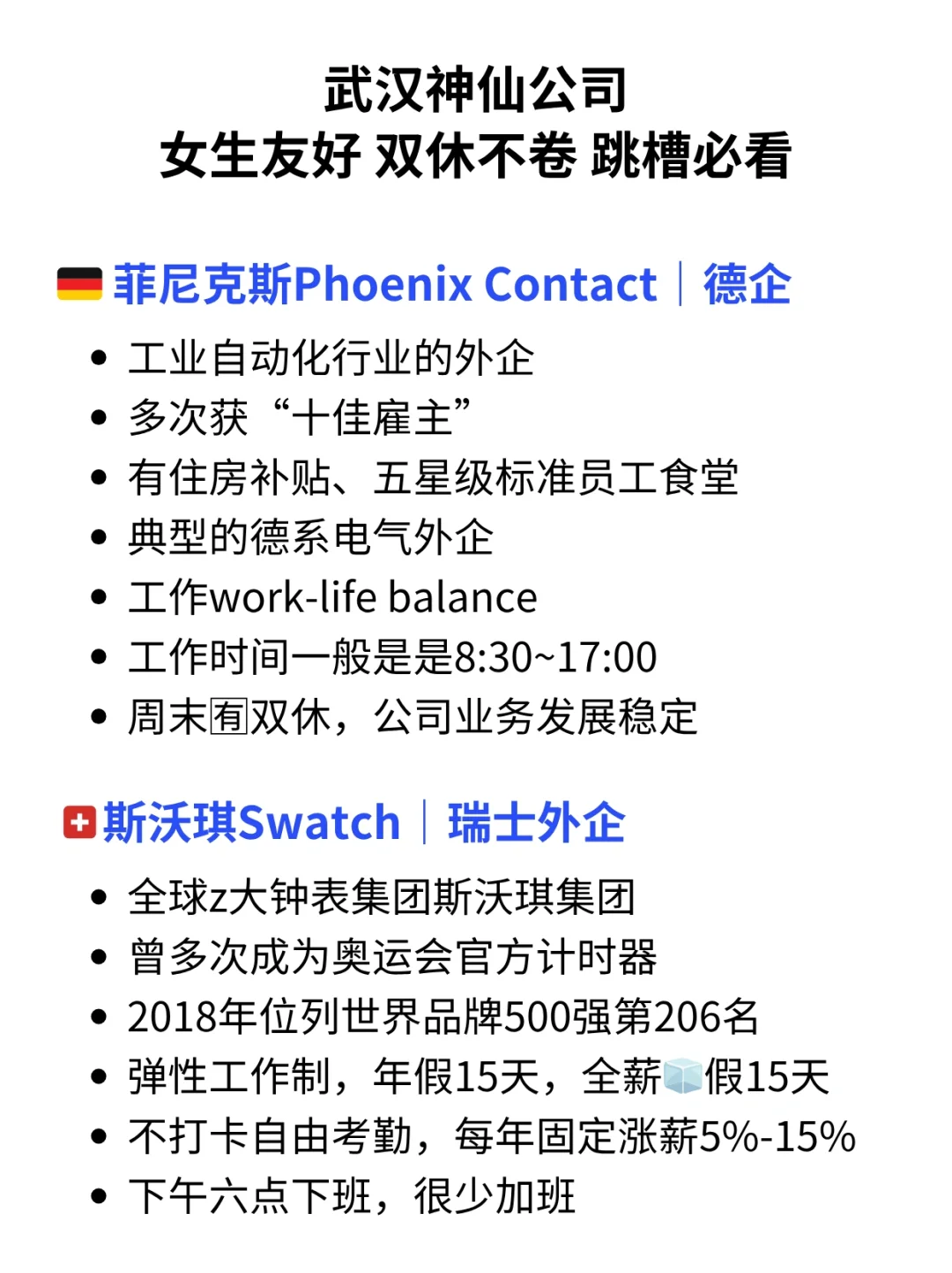 ▪️菲尼克斯:工业自动化行业的德企,工作时间一般是是8:30~17:00,周末🈶双休,公司业务发展稳定