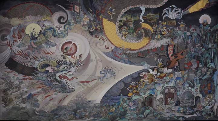今年中国国际网络文学周上,现场首发的壁画作品《黄风岭》参考自游戏《黑神话:悟空》,由中国美术学院壁画系李丹老师以传统壁画技法重绘。