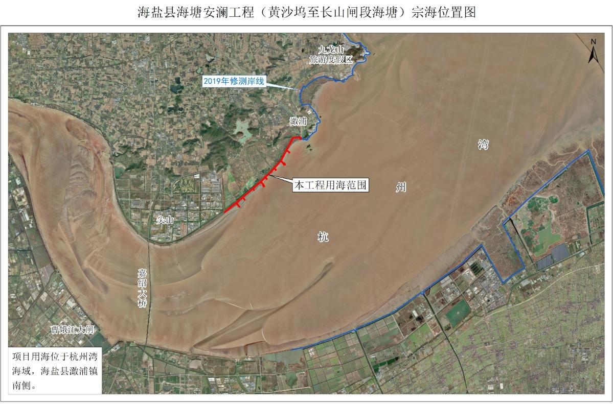 海盐县澉浦镇最南端,工程堤轴线西起望江亭,东至长山闸