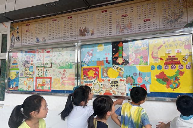 同学们利用周末时间,围绕国庆、中秋精心设计绘画版面,用画笔描绘出自己心中的愿景。一幅幅用童心童趣绘制的作品。用一双双巧手制作手工,描绘壮美河山。同学们的描绘饱含着对亲人的祝福和对祖国的祝愿。