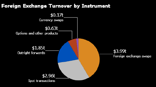 BIS称,“尽管占比降至2010年调查以来最低水平,外汇掉期在市场中依然发挥着关键作用。”