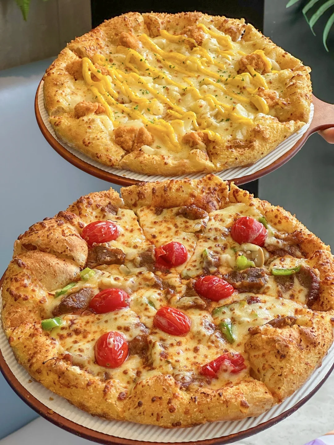 姐妹们!新出的必胜客大菜单也太香了吧~​ 花小钱就能享受高品质,性价比直接拉满!💯 最近上新了超多新品,真的s疯了!!​ 今天全部拿下,一口下去幸福感爆棚!!​ ​ 🍕39r法式黄油风味嫩鸡披萨,现拍饼底铺满大块脆嫩炸鸡,混合着奶香芝士~黄油味超浓郁!还有意大利式整颗爆浆番茄牛肉披萨69r,大块牛肉铺满贼过瘾,搭配8颗爆浆番茄一口浓郁爆汁💥我一个人能炫大半张!​ 🍔19.9r就能吃到秘汁炭烤风味牛堡,100%进口巴西牛上脑,融入经典炭烤风味酱,肉汁多到从指缝流出来🤤 🍝还有罗马愤怒辣辣意面19.9r,秘制鲜辣酱汁裹满每根意面,辣中带香越吃越上头~搭配蝴蝶翅,酥香入味欲罢不能,小钱风氛围感拉满了!​ 🥤武夷水仙大红袍茶饮9.9r !!!武夷水仙大红袍梅梅茶15r就可以直接拿下!梅子混合山楂的果味碰撞武夷水仙茶底,清爽又解辣~​ 吃完披萨来一口,瞬间清爽还能再战三百回合!​ ​ 还有好多新品我直接挑花眼😂 人均几十块就能吃撑!太幸福了!​ ⚠️来必胜客享受超高性价比新品,千万别错过这些低调松弛小钱风美食!周末不管是朋友聚会还是家人聚餐,都赶紧给我狠狠薅这个羊毛~​ ​