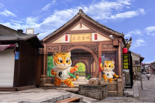 文体旅集团在广府古城景区以“溢彩广府·千灯盛宴”为主题,首次引入了墙体彩绘及晒秋民俗。景区内以太极文化与古城风貌为主题的墙绘,搭配全新打造的美陈装置与古城全景沙盘,为游客营造了沉浸式拍照打卡空间,让传统景观焕发艺术新趣。此外,在农户屋顶布设了各类粮食作物,以五彩秋实装点古街巷陌,再现传统农俗画卷,为游客带来浓郁秋日氛围与独特视觉体验。夜晚更有《梦回邯郸》光影游船夜游、高跷货郎巡游等沉浸式演艺,融合戏剧、舞蹈与非遗元素,点亮古城夜色,开启沉浸式夜游新篇章。