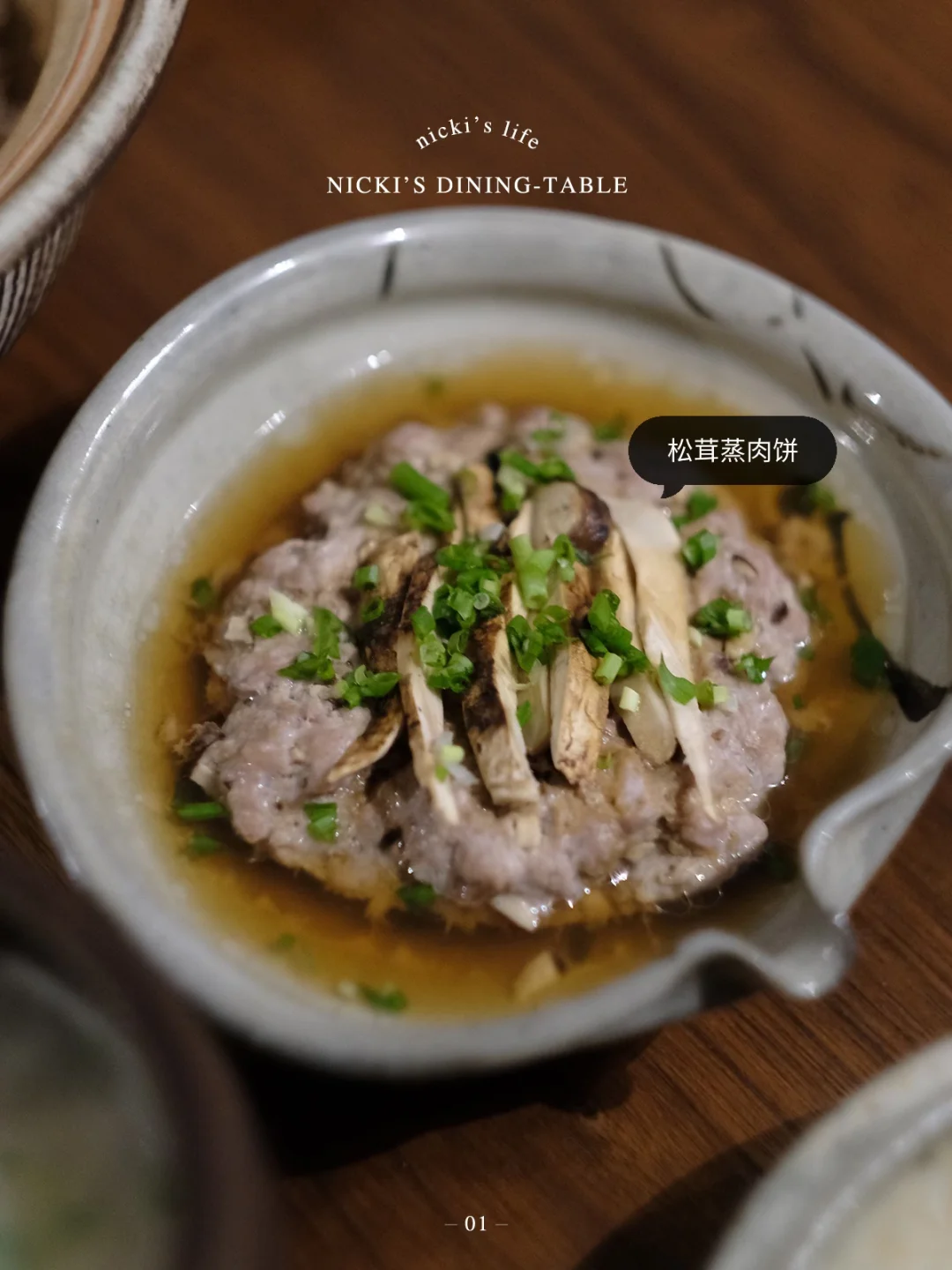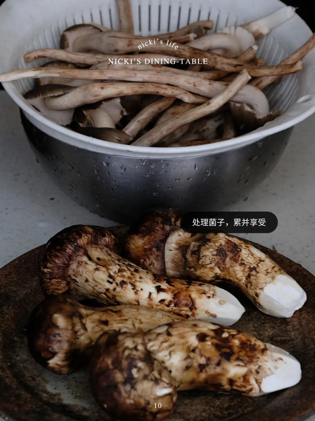 前几天去了趟云 南,抓菌子的尾巴,当地人其实不怎么吃松茸。但对于我这样的外地人来说,每年还是要变着花样吃一下它的,让菜场姐姐寄了一些回来,赶紧处理赶紧吃。 - 🔅今日的c位菜谱:松茸蒸肉饼🔅 ·猪肉糜加盐、料酒,抓匀,加入松茸粒,搅拌均匀上劲。 ·将肉平铺在有深度的盘中,用筷子戳几下肉饼(透气快熟),码上松茸丝或松茸片,放入蒸箱蒸10分钟左右。 ·淋上少许蒸鱼豉油和花生油,撒上葱花即可。 🥗 菜谱: -松茸蒸肉饼 -松茸鸡纵菌炊饭 -松茸鲈鱼汤 -鸡枞青椒炒猪肉