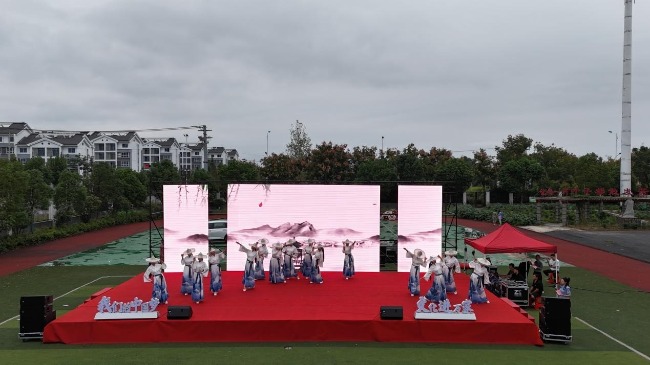 大皖新闻讯10月2日下午,由中共庐江县委宣传部、庐江县文旅局主办的2025年“我们的中国梦文化进万家”文艺汇演活动在凤桥社区杨庄小学操场举行。演职人员、观演群众共计200余人参加了这场文化盛宴。