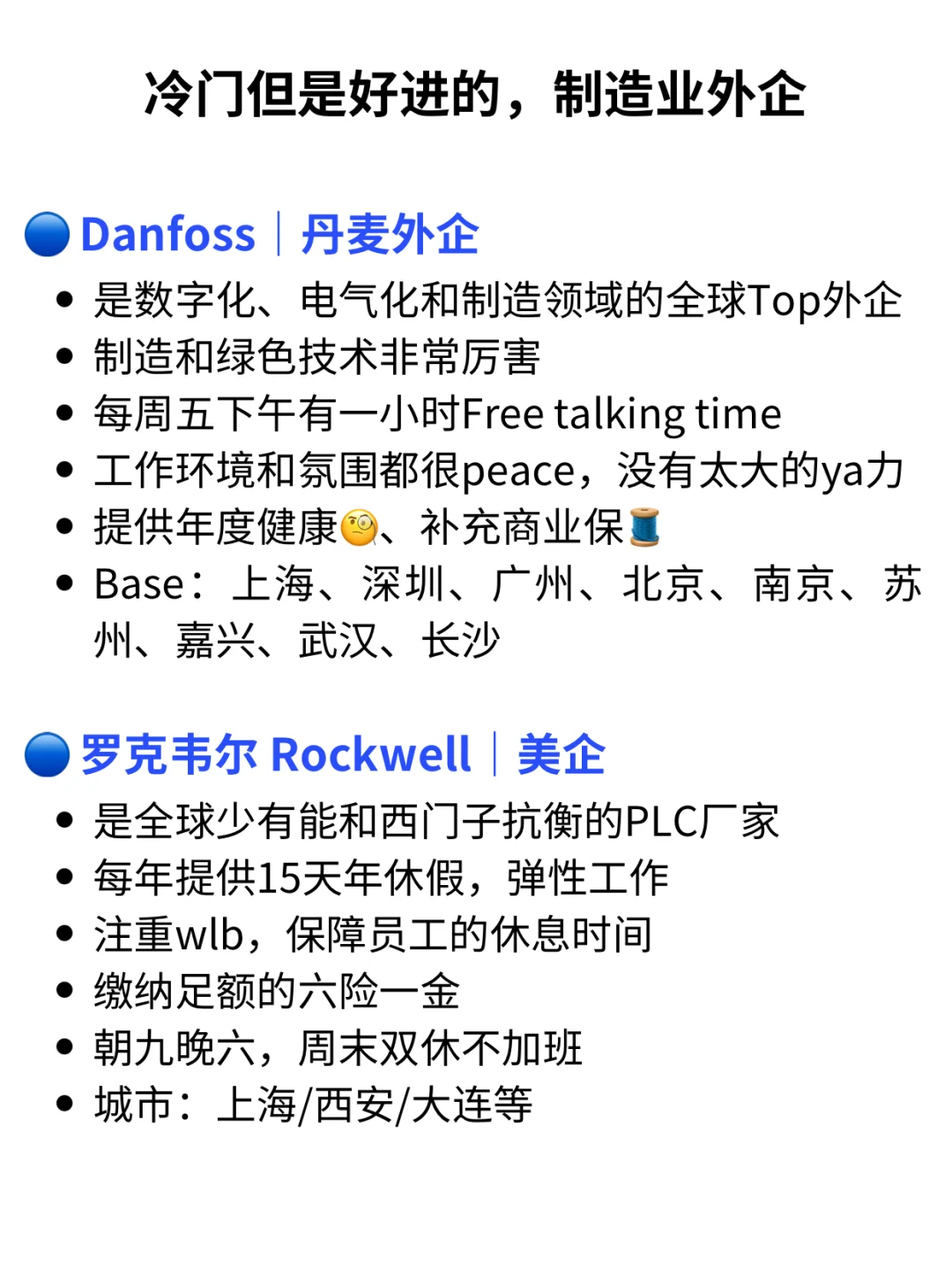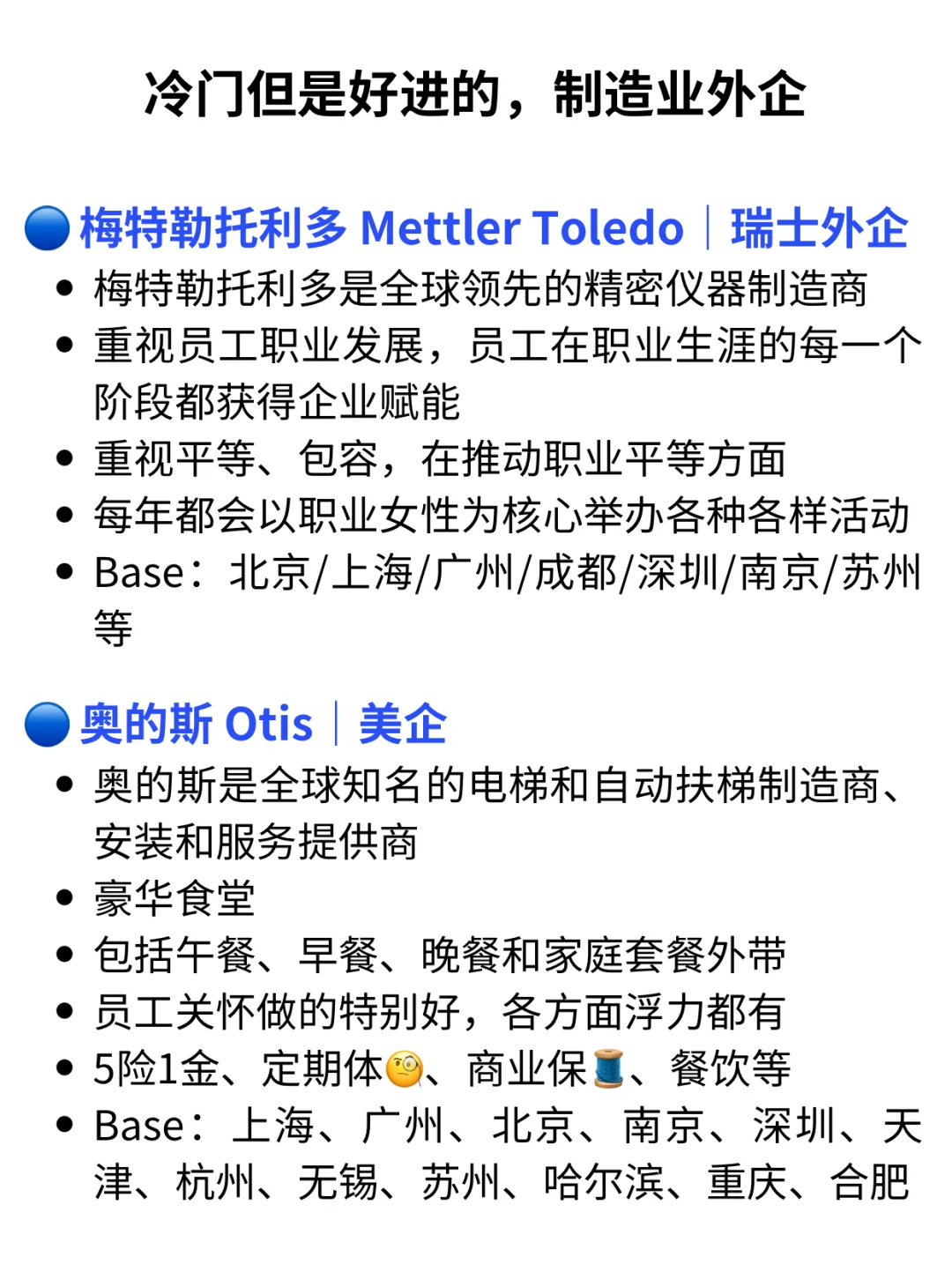 今天给大家分享的是发展非常平稳,而且work-life-balance的制造业外企,文科生也能入职!(外企list👀看上图‼️)