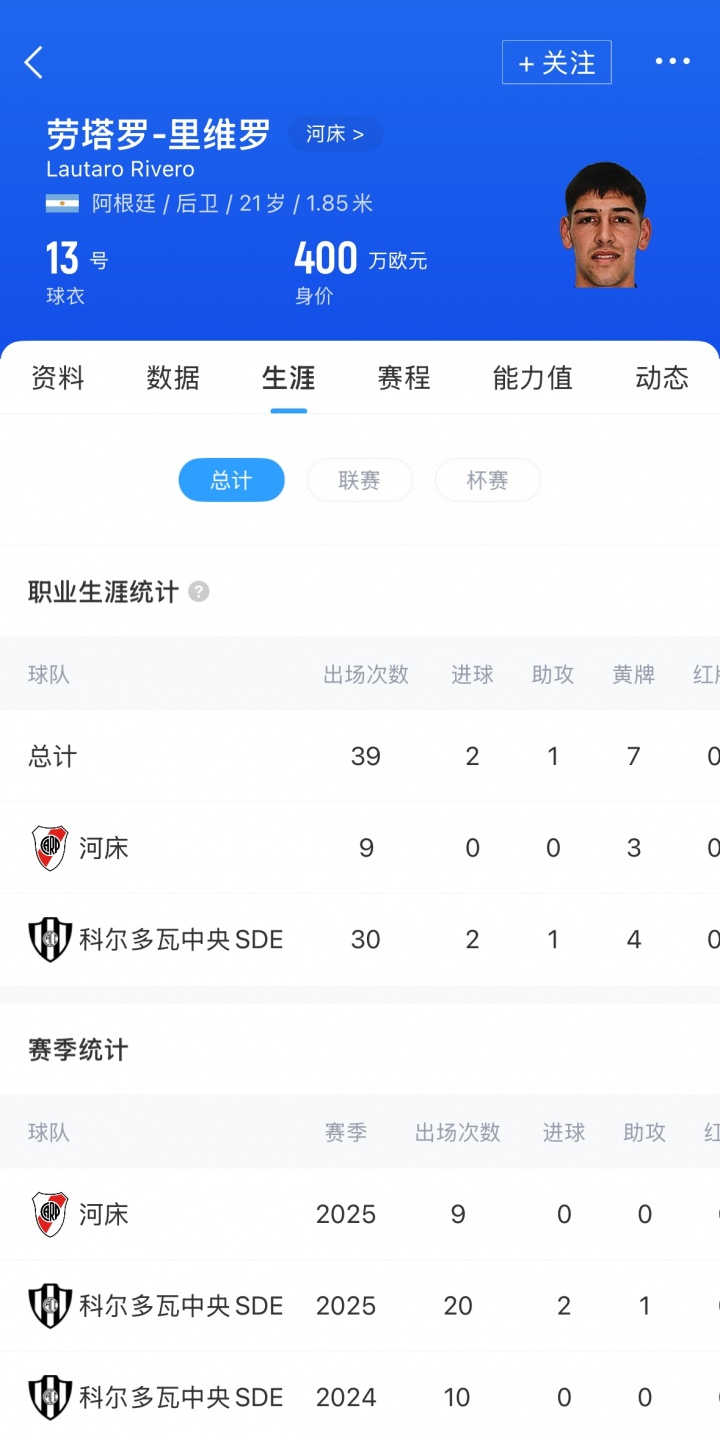 直播吧10月04日讯阿根廷国家队公布了新一期名单,其中河床21岁后卫劳塔罗-里维罗入选。阿根廷媒体TYC体育发文介绍了里维罗。