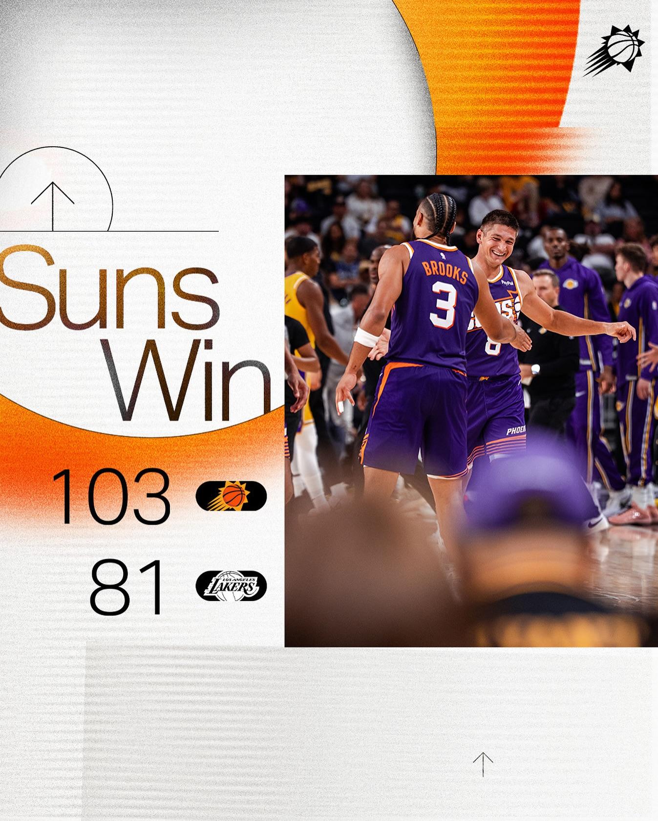 “以一场胜利开启季前赛!#SunsUp”太阳官方附文道。