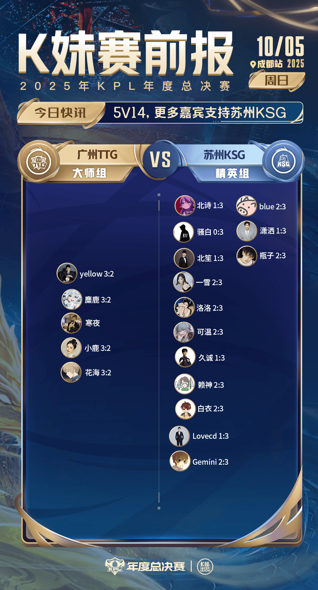 TTG对战KSG:5v14,更多嘉宾支持苏州KSG;