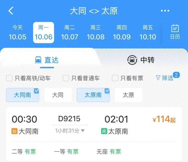 首次开行的“歌迷专列”运行区间为大同南站一站直达太原南站,列车车次为D9215次,大同南站开行时间为6日0点30分,到达太原南站时间为2点01分,全程运行91分钟。