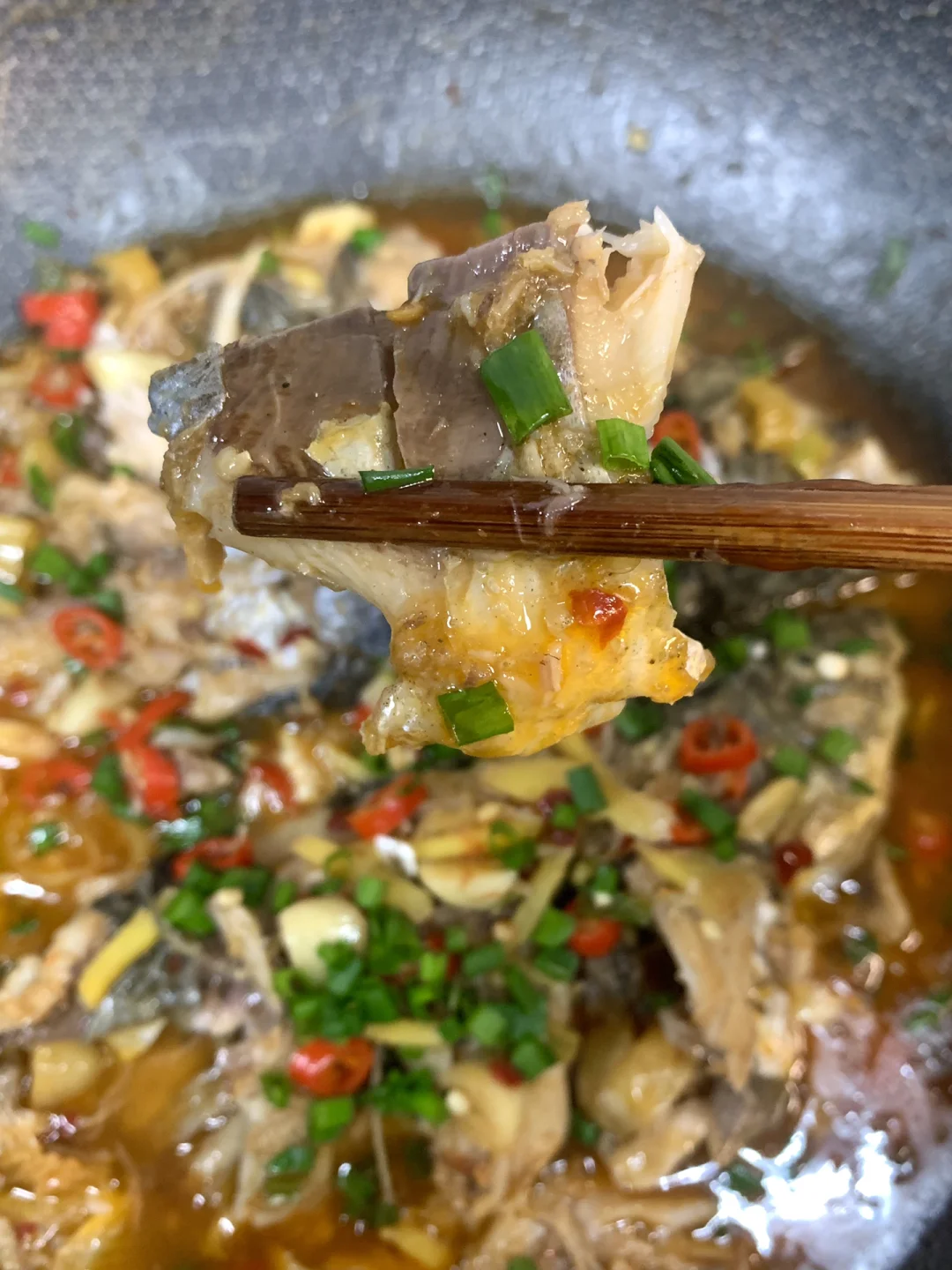 食材:鲫鱼、葱、姜、蒜、小米辣、泡椒