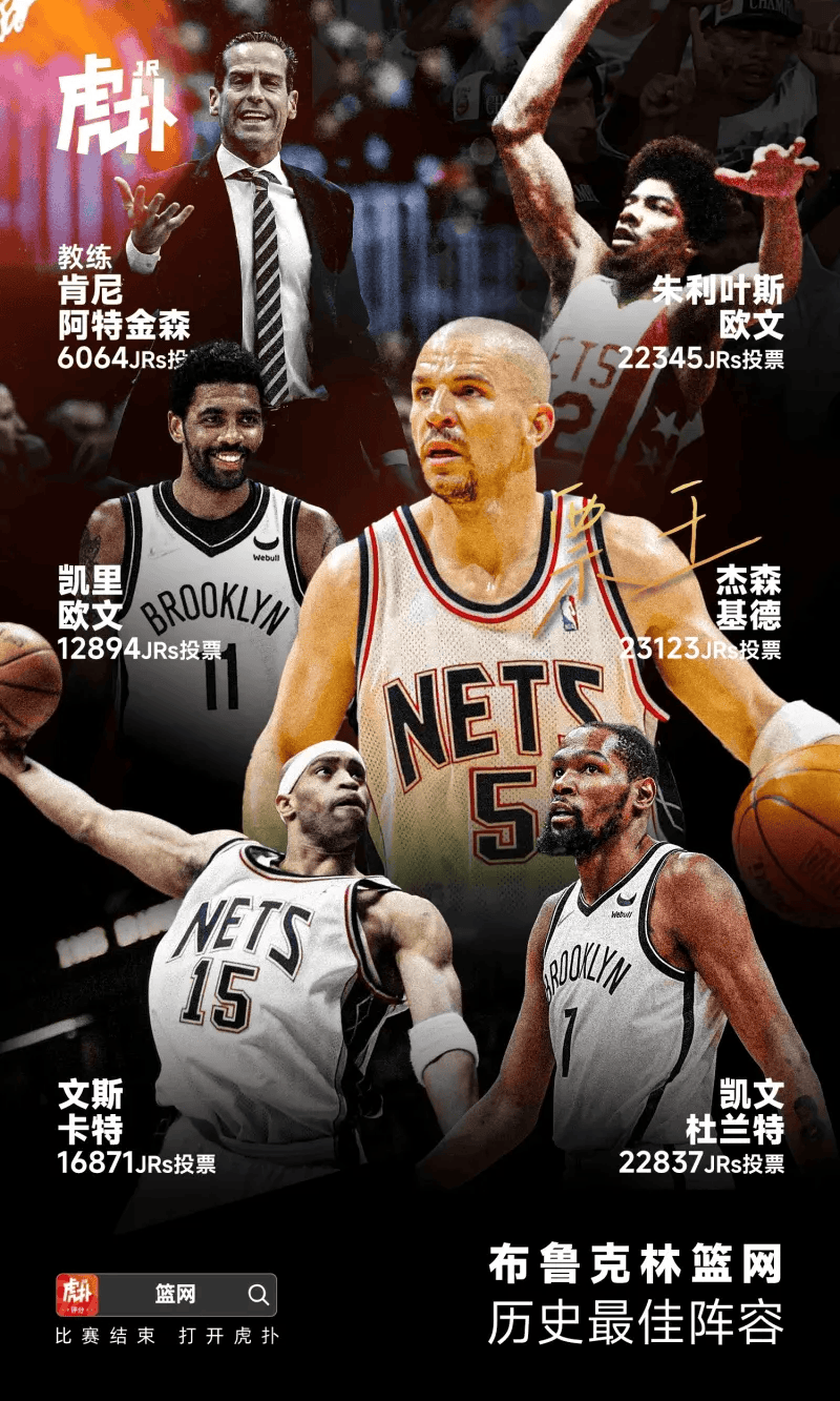 今日,JRs评选的篮网队史最佳阵容正式出炉,凯文-杜兰特的名字再度出现在其中。这也是杜兰特在本次系列活动中的第三次入选,此前他分别在勇士(96429票)和雷霆(59012票)队史最佳阵容中占据一席之地。