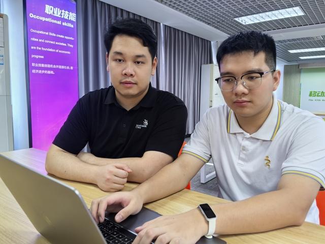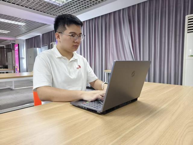 虽然只有19岁,但蓝端诚透着一份超乎同龄人的沉稳。从小看着家人与计算机打交道,他早早对代码、软件产生浓厚兴趣。2021年,他入读广州市工贸技师学院学习网站开发与维护专业,勤勉、认真的他便给老师留下深刻印象。师兄杨书明获得世界技能大赛特别赛移动应用开发项目冠军的经历,给了他很大的触动,“师兄杨书明技能成才的经历深深地打动了我,我当时想,是不是有一天我也能站在台上分享我的经历。”