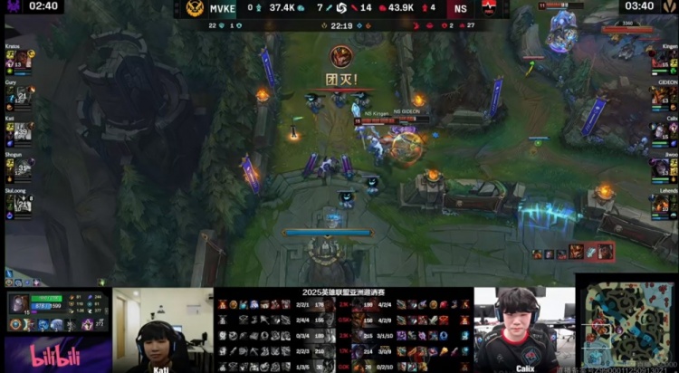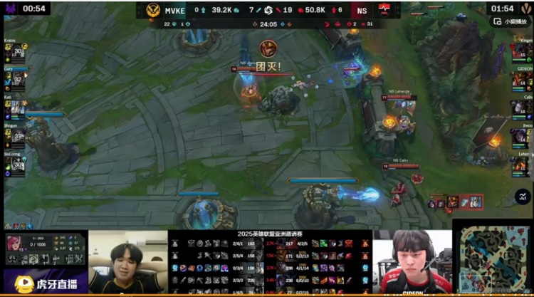 [23:48]NS再次打出0换5团灭MVKE,推掉两路高地一波结束首局比赛!