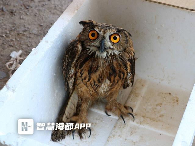 国家二级保护动物长耳鸮被困渔排网,众人合力救助