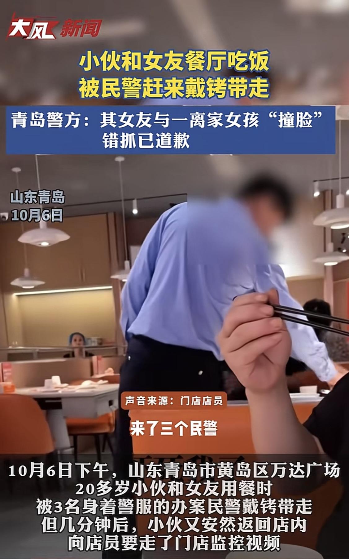 山东青岛,一20多岁小伙正和女友在餐厅用餐,突然来了3位身穿制服的民警,小伙倒也淡定,问怎么了?可民警却说:“抓的就是你!”说完竟直接拿出手铐把小伙给铐走了。可五六分钟后,小伙又回来了,原来是民警抓错了人,因为他女友和一位走失的13岁女孩长得很像,民警误以为小伙是人贩子。误会解除后,小伙接受了民警的道歉。 山东青岛一家餐厅里,20 多岁的小吴刚坐下没两分钟,对面的女友还没缓过神,刚才铐走他的三位民警就跟着走了进来,手里还拿着一杯刚买的奶茶递给他,连声道歉。 谁能想到,几分钟前还被民警严肃告知 “抓的就是你”、戴上手铐带走的小伙,竟是因为一场乌龙 —— 民警把他女友错认成了走失的 13 岁女孩,误以为他是人贩子。 这天晚上七点多,小吴和女友约好在这家常去的餐厅吃饭。两人刚点完菜,聊起周末要去看的电影,就见三位身穿制服的民警快步走进餐厅,目光在食客中扫了一圈,最后落在了小吴和他女友身上。 小吴以为是餐厅有什么情况,还挺淡定地抬头问了句怎么了。可民警没多解释,只说 “抓的就是你”,接着就拿出手铐,示意小吴配合。周围的食客都看了过来,小吴和女友都懵了,小吴想再问清楚,民警却怕 “人贩子” 趁机反抗,赶紧带着他往外走,女友急得想跟上去,也被民警安抚着留在了餐厅。 小吴被带上警车时,心里又慌又纳闷,他仔细回想自己最近的行为,没做过任何违法的事,怎么突然就被抓了?警车上,民警一边开车一边核对信息,问他和身边女孩的关系,还拿出一张走失女孩的照片给他看。小吴一看照片,瞬间愣了 —— 照片上的女孩,眉眼竟和自己女友有几分相似,尤其是扎着马尾辫的样子,不仔细看确实容易认错。 他赶紧跟民警解释,说自己女友已经 22 岁了,不是 13 岁的孩子,两人是恋爱关系,还拿出手机里和女友的合照、聊天记录给民警看。民警这才意识到可能抓错人了,赶紧联系留在餐厅的同事,让他们核实女孩的身份信息。 没过几分钟,警车还没开出两条街,同事就打来电话,说已经确认过了,小吴的女友有身份证,确实是成年人,和走失女孩只是长得像。民警赶紧掉转车头,把小吴送回餐厅,还特意在路边买了杯小吴女友常喝的奶茶,想表达歉意。 回到餐厅,民警当着小吴女友的面,详细解释了情况 —— 原来当天下午有家长报警,说 13 岁的女儿走失,提供的照片里女孩穿着浅色外套、扎着马尾辫,和小吴女友当天的装扮几乎一样。民警接到线索说在这家餐厅看到相似的人,担心女孩安全,才匆忙行动,没仔细核实就误抓了小吴。 小吴听后,虽然刚才有点受惊吓,但知道是民警为了找走失孩子,也没多计较,接受了民警的道歉。周围的食客听说了这事,也都觉得又好笑又暖心,说民警认真负责是好事,就是这次闹了个小乌龙。后来小吴和女友接着吃饭,还开玩笑说 “这下也算跟警察叔叔有过特别的交集了”。 对此,你们怎么看?欢迎留言评论~