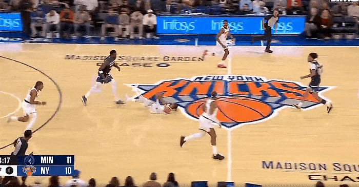虎扑10月10日讯NBA季前赛,尼克斯对阵森林狼的比赛正在进行中。