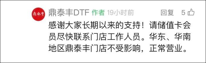 当时官方称华东、华南地区鼎泰丰门店不受影响,正常营业。”