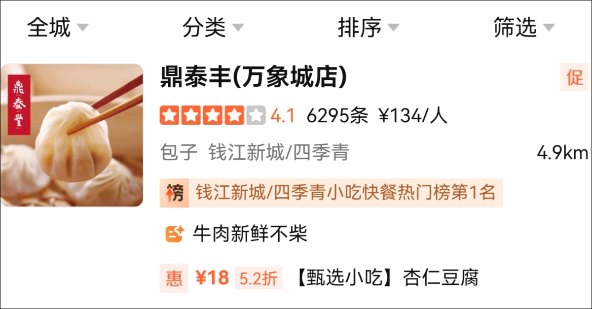 橙柿记者搜索发现,目前杭州仅万象城还有一家鼎泰丰。