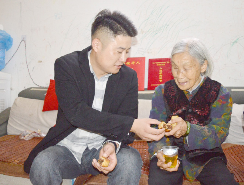 10月3日,“阜南好人”、90后残疾青年刘晓军携米面油与月饼,先后探望了“安徽好人”戎成秀、“中国好人”李振荣和梁娥,完成了一场好人之间的相聚。