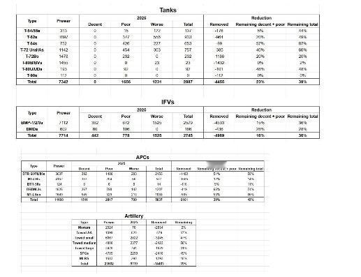 俄军4400辆坦克消失,俄罗斯高估了苏联遗产 10月8日消息,开源情报显示,俄罗斯自2022年俄乌冲突爆发以来,已从其战前的7300辆坦克库存中调出超过4400辆,目前仅剩不到2900辆在库。现存坦克中只有约23%处于可用或良好状态,大量老旧型号如T62、T55乃至T54正被重新焊接上阵。 不光是坦克,俄军其他重装备的日子也不好过。BMP步兵战车的数量从之前的7100辆锐减到2579辆,跌幅肉眼可见。 装甲运输车的情况更糟,战前还有11000多辆撑场面,现在直接掉到了约5000辆,一半多的家底儿就这么没了。 BMD空降战车和各类火炮系统也没逃过这波削减潮,各自的数量都少了50%以上,曾经的钢铁洪流现在只能靠拼凑维持规模。 其实早从冲突一开始,外界就能看出俄军对自家苏联遗产的估计有点飘了。当年苏联解体后,俄罗斯继承了大批重装备,这些装备在很长一段时间里都是俄军的底气。 可谁也没想到,这些看似庞大的库存,早就因为年久失修、维护不善出现了大问题。很多坦克和装甲车只是表面看着完整,内里的发动机、电子设备早就没法正常工作。 冲突爆发后,俄军一开始还能靠库存里状态好的先进型号撑场面,像T72、T80这些主战坦克确实发挥了不少作用。 可随着冲突持续,前线消耗越来越大,状态好的装备越打越少,俄军才不得不开始启用那些老旧型号。 但这些老古董根本跟不上现代战场的节奏,T54、T55这些坦克连基本的反应装甲都没有,面对乌军的反坦克导弹,简直就是活靶子。 士兵们开着这些老坦克上战场,心里也没底,可没办法,库存里能调动的装备就这么多。 火炮系统的情况也类似,很多火炮因为缺乏保养,射程和精度都大打折扣,有的甚至还没打出几发炮弹,炮管就出现了问题。 BMD空降战车原本是俄军空降部队的核心装备,可现在数量减半,空降部队的作战能力也跟着直线下降,想再搞大规模空降作战,难度比之前大了不止一倍。 之前俄军总觉得,靠着苏联留下的这些家底儿,应付一场局部冲突绰绰有余。毕竟7300辆坦克的库存,放在全世界都是数一数二的规模。 可他们忘了,装备这东西不是放在库房里就行的,得定期维护、更新,才能保持战斗力。苏联解体这么多年,俄罗斯经济一直起起伏伏,对装备维护的投入远不如从前。 很多装备就这么在库房里放着,风吹日晒,零件老化,慢慢就成了一堆废铁。真到要用的时候,才发现能拿得出手的没几个。 现在前线的士兵们,只能硬着头皮用这些老旧装备。有时候为了让一辆老坦克能动起来,维修兵得拆东补西,从好几辆报废坦克上拆零件,才能凑出一辆勉强能开的。 就算开上了战场,这些老坦克的表现也不尽如人意。面对乌军装备的先进反坦克武器,它们几乎没有还手之力,经常刚出现在战场,就被盯上摧毁。 装甲运输车和步兵战车的情况也差不多,防护能力差,很容易被无人机或者火箭弹击中,造成人员伤亡和装备损失。 火炮系统因为精度不够,往往需要发射更多炮弹才能达到预期效果,这又进一步加剧了弹药的消耗,形成了恶性循环。 俄军现在也意识到了问题的严重性,开始加大对装备生产和维护的投入,可这不是一天两天能见效的。 新装备的生产需要时间,老旧装备的改造升级也得有足够的技术和资金支持。而且前线的消耗还在继续,每天都有装备被摧毁或者损坏,库存压力越来越大。 之前那种靠苏联遗产撑场面的日子,显然已经走不通了。俄军现在必须面对现实,重新评估自己的装备实力,调整装备发展策略。 不然的话,随着冲突持续,装备短缺的问题只会越来越严重,到最后可能连基本的作战需求都满足不了。 毕竟现代战争拼的不只是装备数量,更重要的是装备质量和可持续的供应能力。光靠吃老本,迟早会把家底儿败光,这一点俄军现在应该深有体会了。 看着库房里越来越少的可用装备,再想想前线士兵的处境,俄军高层估计也在为当初高估苏联遗产的事儿后悔。可现在说这些都晚了,只能想办法赶紧弥补,尽可能保住现有的战斗力。