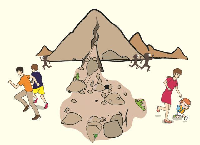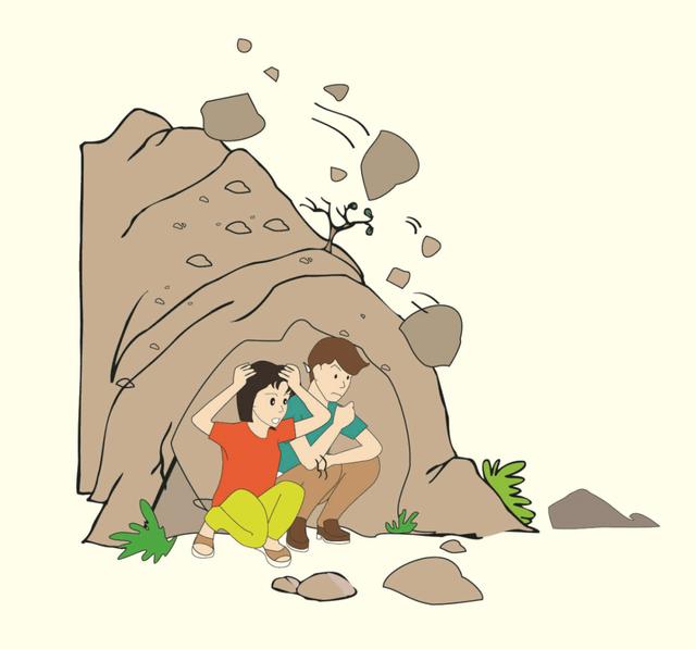 (2)躲避山崩、滑坡、泥石流:遇到山崩、滑坡,要向垂直于滚石可能运动的方向跑,切忌顺着滚石方向往山下跑。也可躲在结实的障碍物下,特别注意保护好头部。迅速撤离到开阔,不会受崩塌、滑坡、滚石影响的地方避灾。