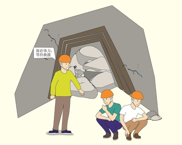 (2)若井口塌方,暂时不能返回地面,也要保持沉着冷静,由专人指挥,尽力保存体力,等待救援人员的到来。