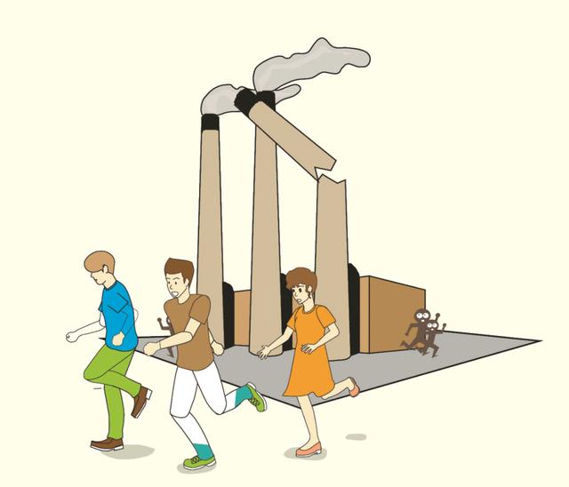 (3)毒气泄漏时:遇到化工厂着火,毒气泄漏,不要朝顺风方向跑,要尽量绕到上风向,设法用湿毛巾捂住口、鼻。