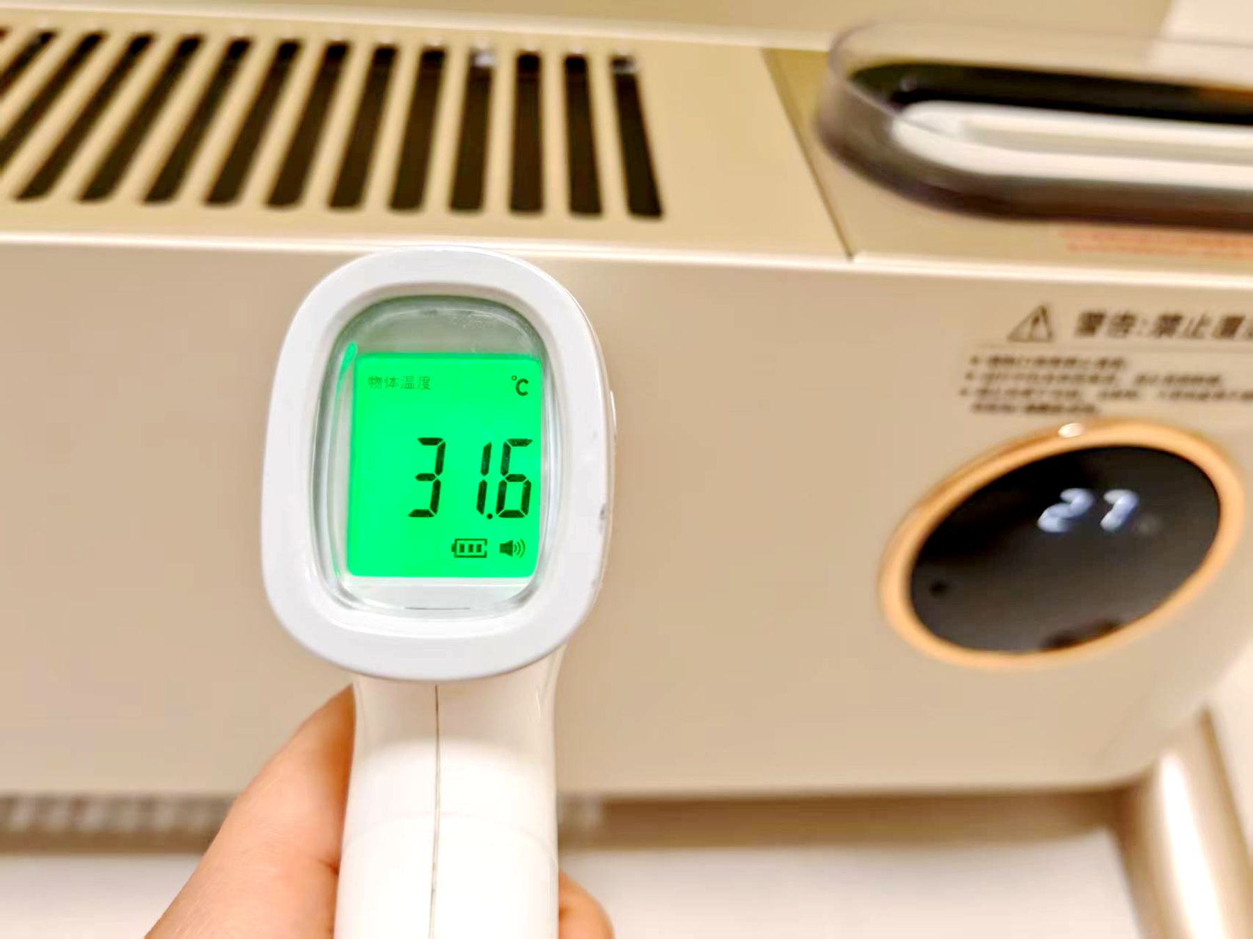 调至常规制热档位后,持续运行 20 分钟,随后使用温度仪,分别对角落、窗台拐角、衣柜角落、床等 4个位置进行测温。结果表明,温差相差都控制在5度内,实现 “开机即热” 的同时,为全屋供暖提供持续且强劲的热源基础,实现由内而外的均匀升温,避免局部燥热、边角冰凉的问题,开启取暖器后无需久等,短短几分钟就能感受到暖意从机身向四周蔓延,无论是靠近机身的区域,还是窗台角落,都能享受到同样舒适的温度。