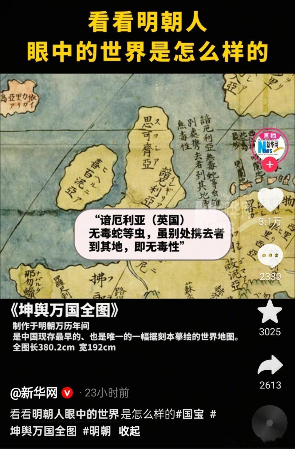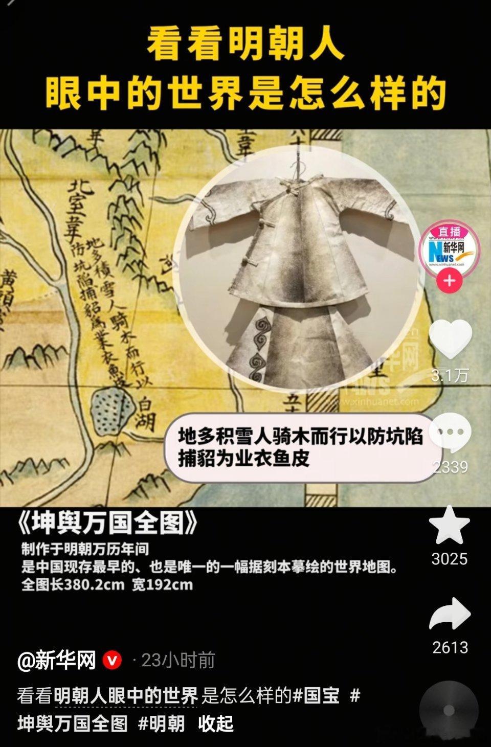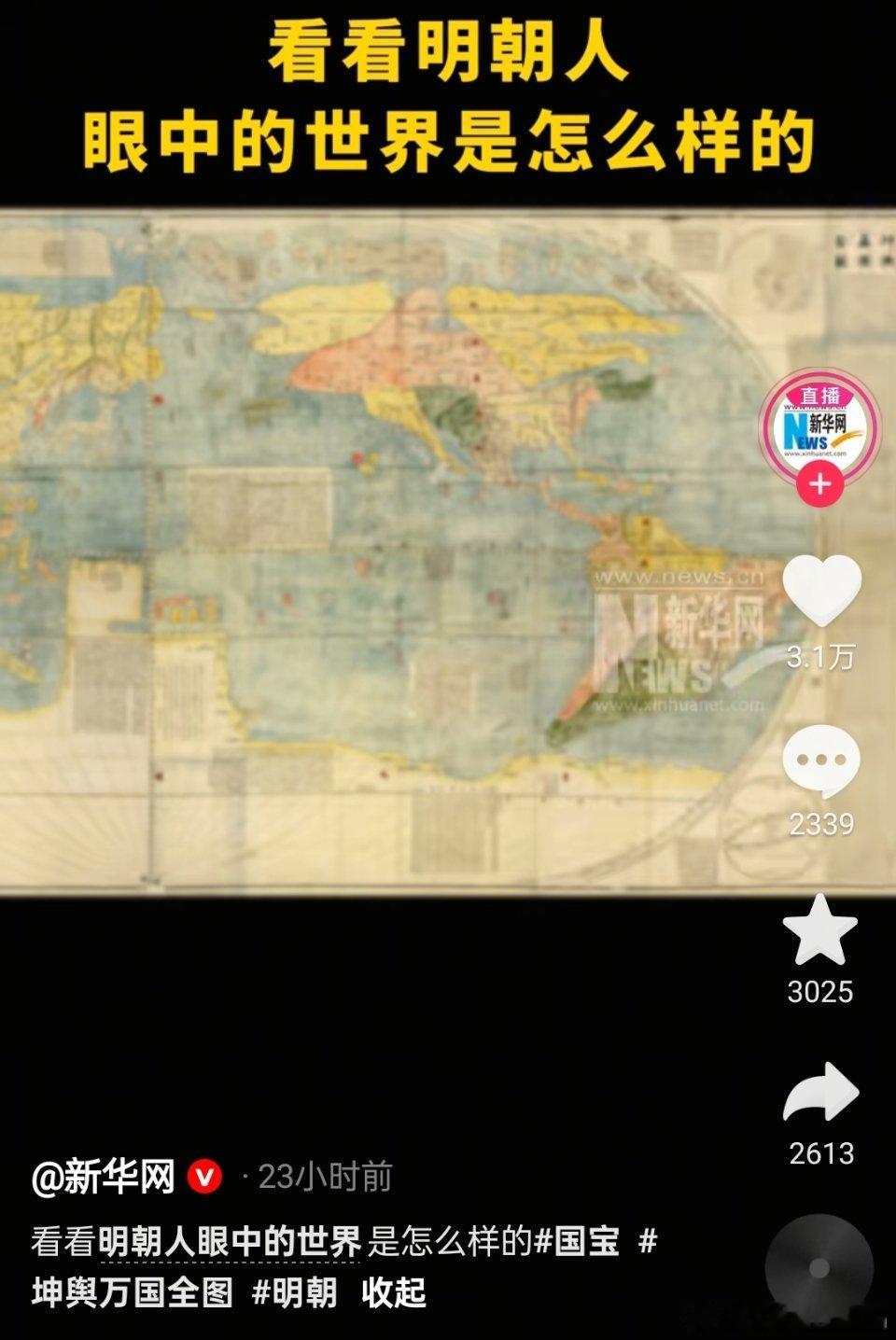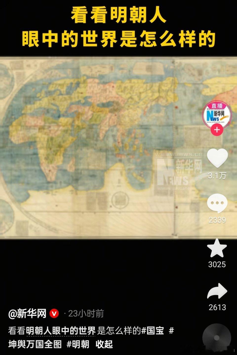 🔻新华网:《坤舆万国全图》制作于明朝万历年间,是中国现存最早的、也是唯一的一幅