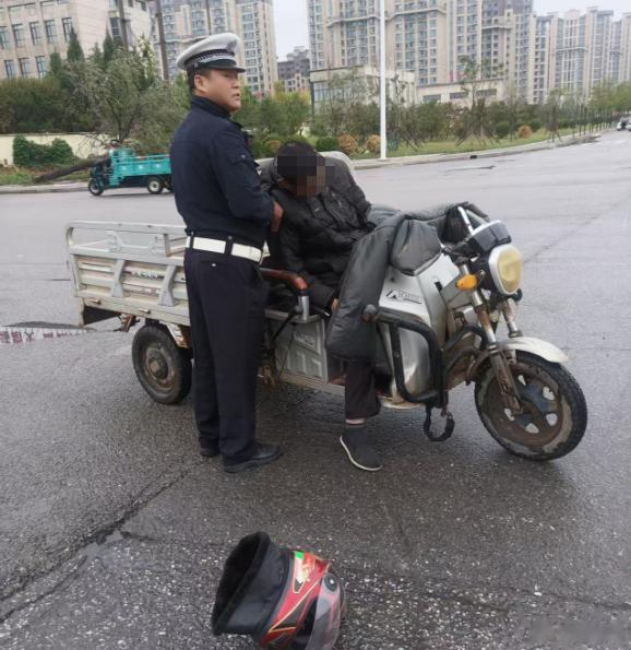 10月11日上午8时13分,海河路与长芦大道交叉口车流渐密,一位老人正驾驶电动三轮车沿路口正常行驶,突发心脏疾病,所驾驶的电动三轮车失去控制,此时正在执勤的交管支队二大队三中队交警发现老人快要晕倒,便跑到老人身边查看情况。