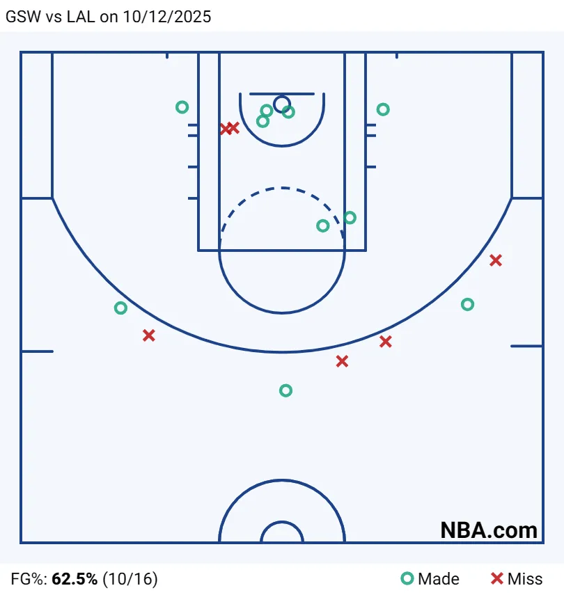 虎扑10月13日讯今日,记者DaltonJohnson在社媒附上了一张布兰丁-波杰姆斯基在今日比赛中的投篮图。