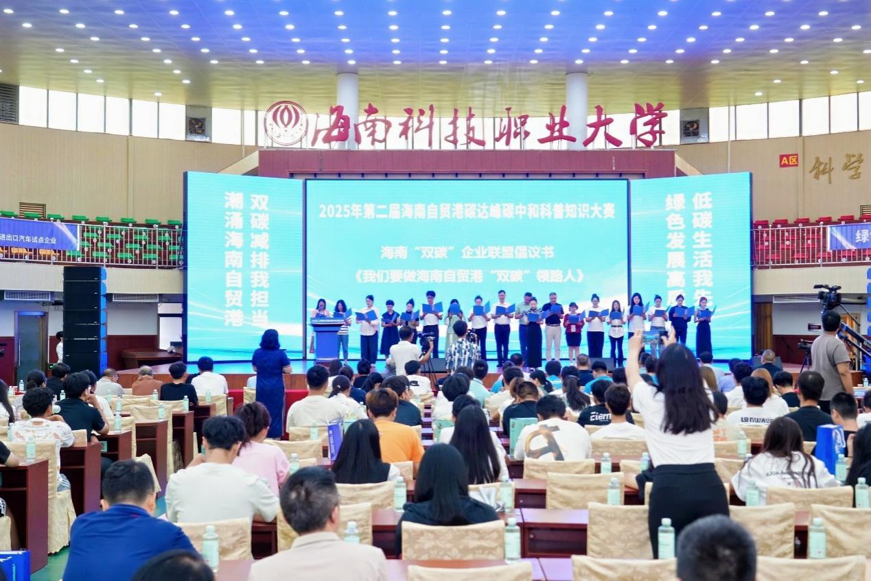 人民网海口10月13日电(记者李学山)10月12日,2025年第二届海南自贸港碳达峰碳中和科普知识大赛颁奖典礼在海南科技职业大学举行。本届大赛作为2025年“全国科普月”海南主题活动的组成部分,旨在通过科普竞赛提升全民低碳意识,推动绿色生活方式普及;自今年7月启动以来,得到了社会各界的广泛关注和积极参与。