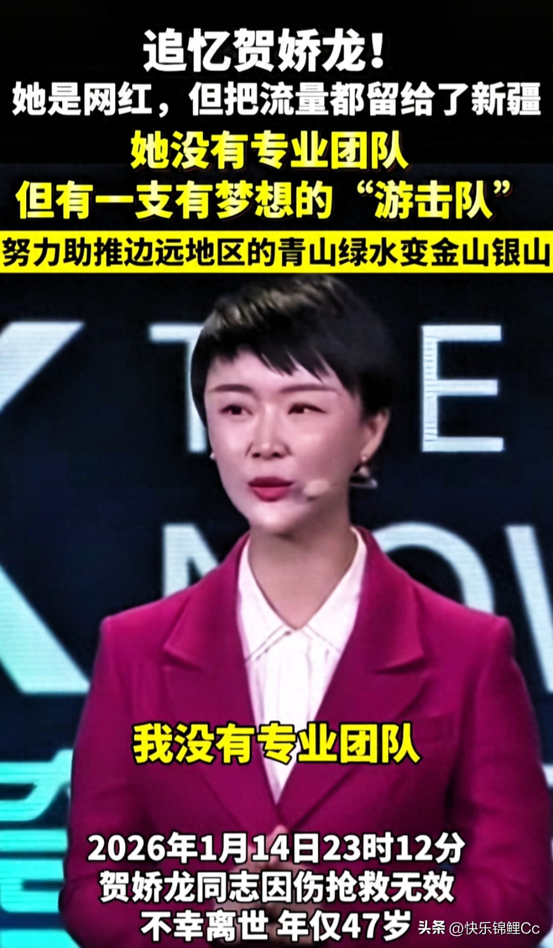 红斗篷的身影,定格在雪原。她带火的农货还在温暖着别人,她点燃的家乡旅游还在继续,她那股子赤诚和执着,留在了所有认识她的人心里。她策马奔腾来,为草原带光,悄然离去,把魂留在昭苏。有人说她“没辜负昭苏的草原,没辜负老乡,没辜负初心”,可惜,还是辜负了自己,没能好好歇一歇。