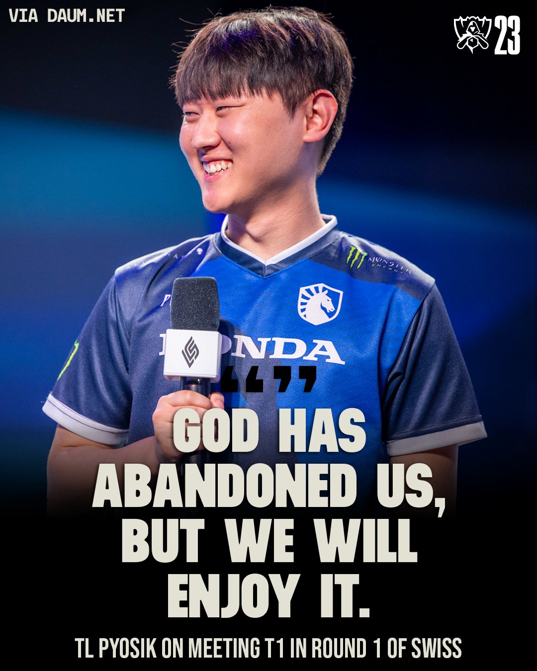并转发了S13TL瑞士轮抽到T1时Pyosik所说的话:上帝抛弃了我们,但我们欣然接受。