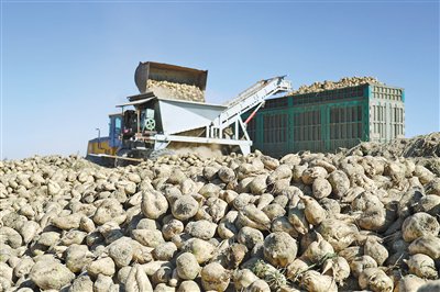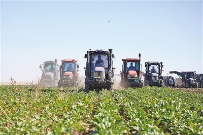 “每天可采收300多亩,预计20天能完成采收,今年亩产约4.5吨。”合作社经理高国艳介绍,合作社通过土地集中连片托管模式,充分发挥资源、技术、设备优势,显著提高了甜菜亩产效益。
