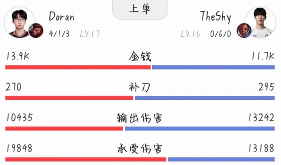 而在2020年MSC上,Doran曾面对TheShy的卢锡安,选出猴子将其打成0-6-0数据。