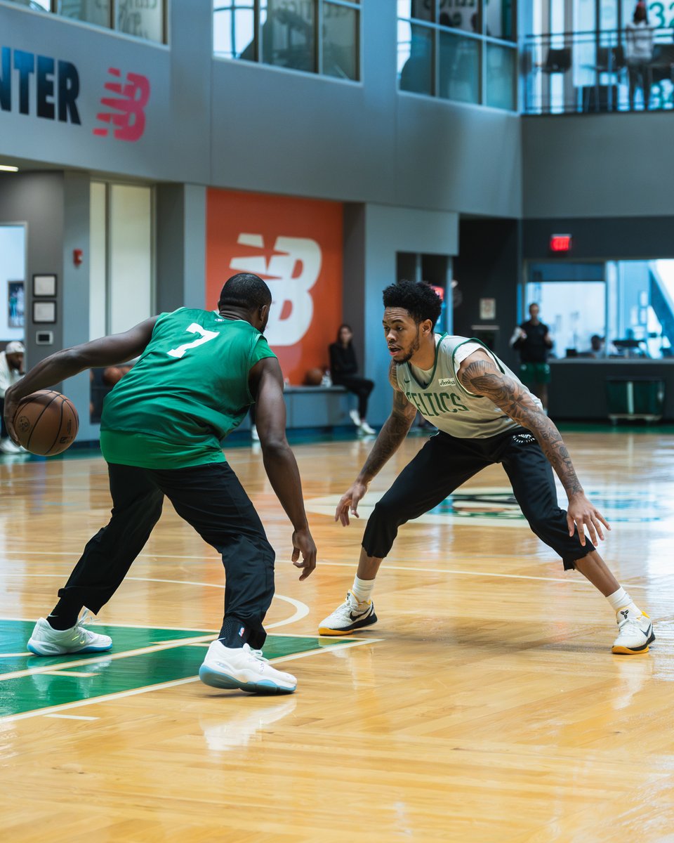 勇士心态!凯尔特人官方分享杰伦-布朗和西蒙斯对位的训练照