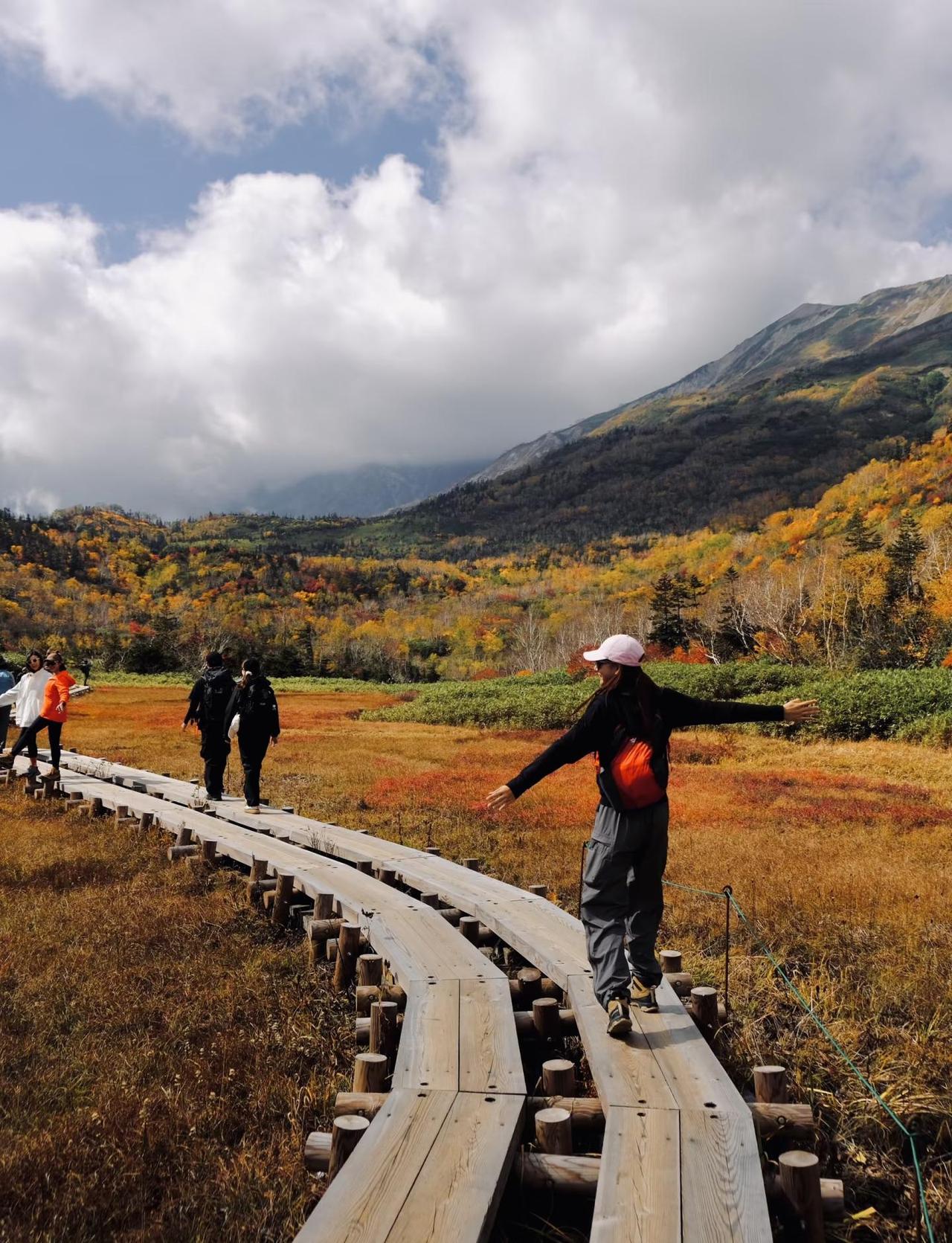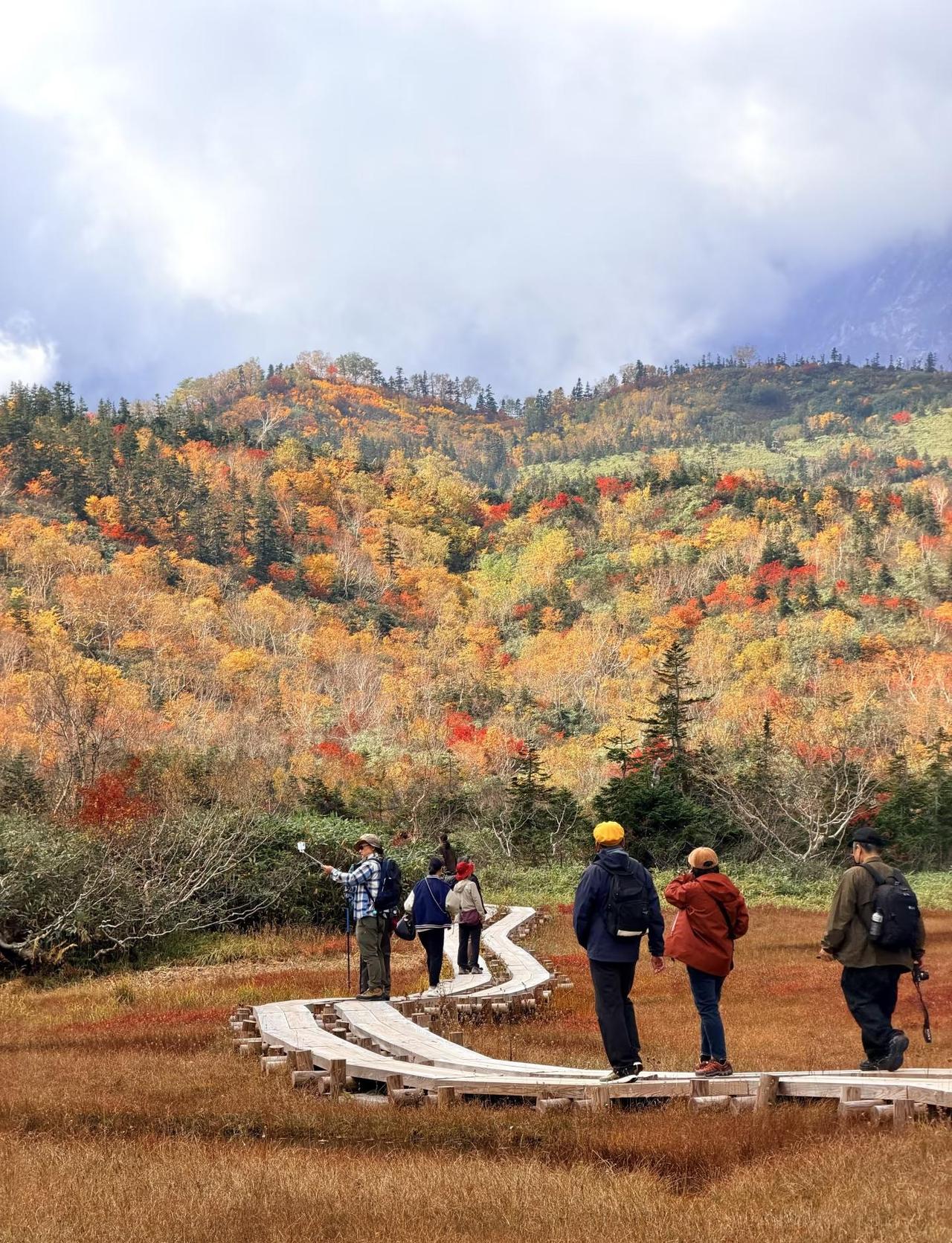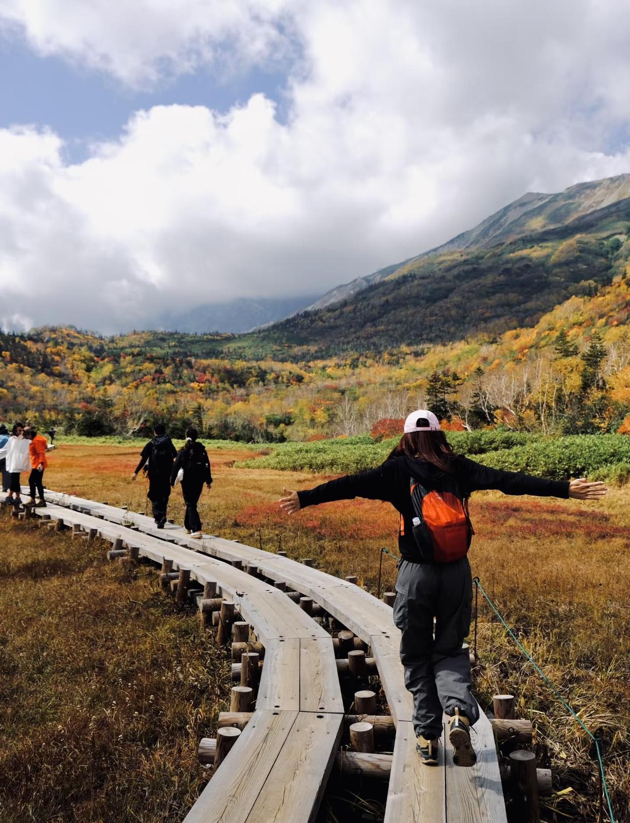 🍁长野白马油画秋景🖼️栂池自然園徒步 不是立山去不起,而是栂池更有性价比! 今年被立山秋景美翻了~但是去一趟立山实在费时费力花销也高,另一个山头的白马栂池也是很绝美~ 🍁一边是火红的岳桦林,一边是金色的湿原草地,抬头还能看到白马连峰的雪线✨ 整条步道就像走进明信片里🍂 🚗自驾: 导航到「栂池中央駐車場」 🅿️停车场一日¥500 🚡栂池ゴンドラ(20min)+ロープウェイ(5min)直达自然園入口。 💰提前网上买票¥3500/人,用qr code在1楼大厅排队换票后,排队上缆车🚡(目前排队上车大约要30mins-1h) ⸻ 🥾徒步路线推荐 🌿全程环形步道约5.5km,分为三个区域: 1️⃣ 入口~浮島湿原(轻松区):木道平坦,好拍又轻松! 2️⃣ 浮島湿原~展望湿原(中段区):坡度稍大,但风景爆表! 3️⃣ 展望湿原~白马岳眺望点(挑战区):可远眺雪山+秋色交织! 🕓推荐时间 ⏰9月下旬~10月中旬 🍁红叶高峰期:10月上旬左右
