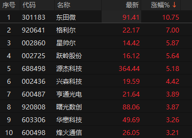 光通信模块震荡走强 东田微涨超10%