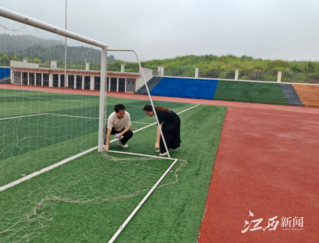 在运动场区域,教师们仔细检查足球门球网、单杠等体育设施的牢固性;在教学楼周边,对护栏、楼梯扶手等进行逐一核验;同时,还对功能用房门窗等设施进行全面排查。每一处细节都做到“不留盲区”,及时记录并推进隐患整改。