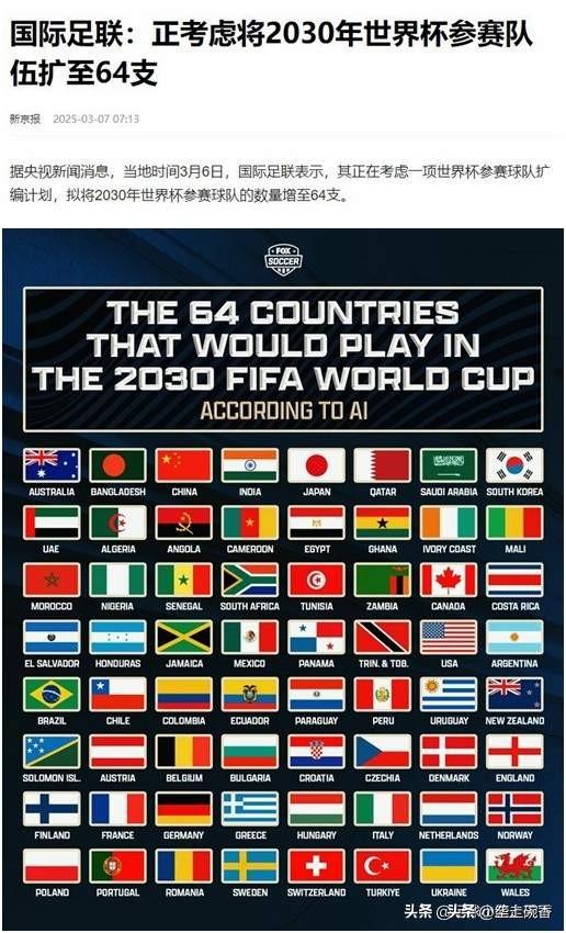 以往国际足联给予亚洲四个名额时,没有中国对出战,如今国际足联给予亚洲8个名额依然没有中国队,下一届世界杯,如果国际足联给予亚洲12个名额会不会有中国对呢?如果给予亚洲16个名额会不会有中国对呢?问题是即便给予亚洲16个名额依然没有中国对,反而有印度对或者印度越南或者菲律宾等国的球队出线的话,你让国际足联的脸面往哪搁嘛。 索性中国足球队无需踢亚洲预选赛,国际足联不如正大光明的给足中国一张直通世界杯的入场券,或者国际足联在大度一些,直接给予中国足球晋级世界杯16强的门前。这样世界杯期间中国对参与比赛的门前绝对是世界杯有史以来最丰硕的成果。整个世界杯赛下来国际足联及举报国家肯定会赚的盆满钵满,皆大欢喜的事相信国际足联肯定为之激动万分,相信中国球迷更加兴奋万分。