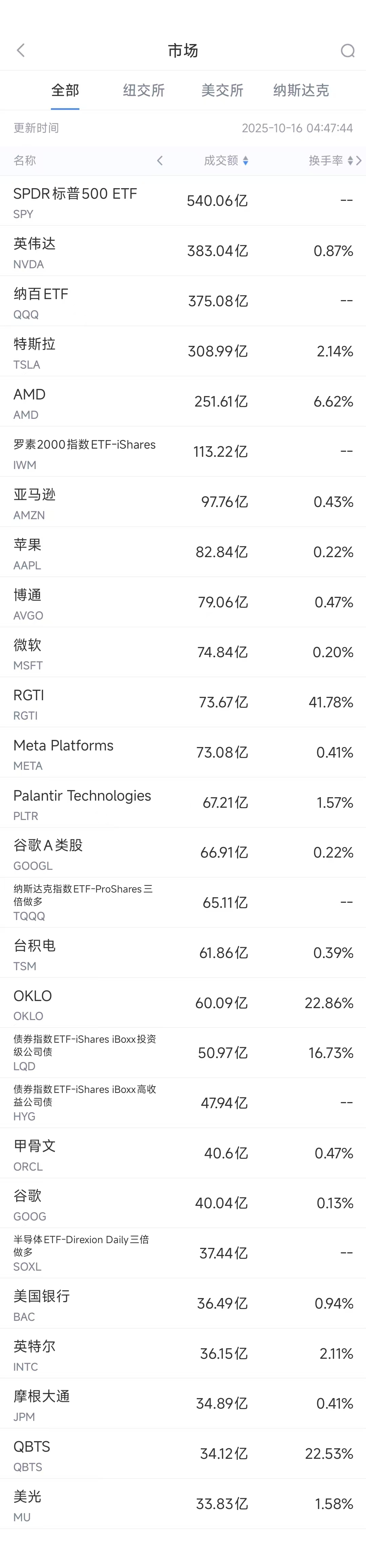 10月16日美股成交额前20:汇丰预测英伟达市值将接近8万亿美元